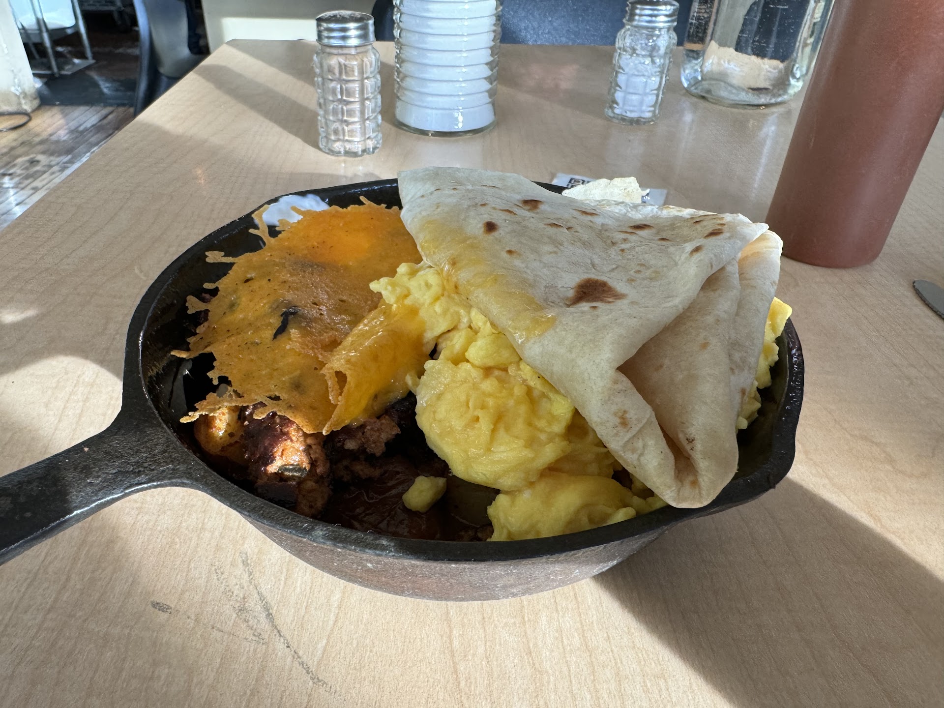 NEXT VISIT: What a quiet, small place you shouldn't be overlooking. Be aware that it isn't a booze-serving place, but the food is worth it regardless. It was my second time, and I had to get something off the menu (first time, I got the special). Well, I had to talk myself into NOT getting the special this day too, as it looked great and a pic of the description is below. I received fantastic service from Desiree and team. I asked her recommendations and went with the skillet. Solid dish. Limited amount of tables, and it has been busy each time I go, so get there early. I already have pegged my next two dishes when coming back...the sausage and pepper egg sandwich and the Good Night grilled cheese thing. The Boss also reads great. Their hot sauce is a combo hot sauce, and ask for a bottle. The iced tea was delicious and unique tasting. I definitely recommend and see you there.