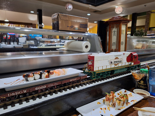 Read moreWe accidentally parked in the "back" so we tried to go around to the opposite side which we thought would be the front. But it was a side entrance. Lol. Upon entering, the restaurant seem dark and dirty. We sat at the bar because that's where the choo choo train was that delivered the sushi. We were given a full menu and a paper menu to mark our items on. For the lunch price of $19.99, you're not entitled to any of the specialty roles unless you pay $3 extra per roll. I won't be coming back for lunch if I ever come back. Dinner is obviously the better value if you like specialty rolls, AKA the high priced rolls. I ordered two individual pieces and the rice was quite dry and the octopus was chewy. The California rolls that we ordered had rice that was a bit more moist but still not what it should be. All of the rolls were pretty boring and pretty basic for the lunch menu price except for the Hampton roll which, surprise, was warm, but it had two different sauces on it that finally had some flavor. The fried tempura was heavily coated and very greasy. Traditional Japanese tempura should not be greasy. The first round of fried tempura included perfectly cooked shrimp, but the second round had overcooked shrimp. The edamame was good. The gyoza was okay and super scalding as it just came out of the fryer. The chicken katsu was crunchy but not very tasty and the beef teriyaki was tasty but a little dry and overcooked. There were no desserts on the all you can eat menu. Again, not bad for 20 bucks a person for all you can eat but not delicious. I left full though because I didn't want to pay for my leftovers. We only got to experience the train one time. The the rest of the time the sushi chefs just handed us our food over the counter which was disappointing because we went for the train experience. Also, it didn't appear that the chefs were well trained. It look like amateur hour behind the bar. Two of them were brand new and were asking very bizarre questions. None of the five people behind the bar were sociable enough to even say a single word to us. And the two waiters didn't seem like they were able to communicate with the men behind the bar. It was an uncomfortable...