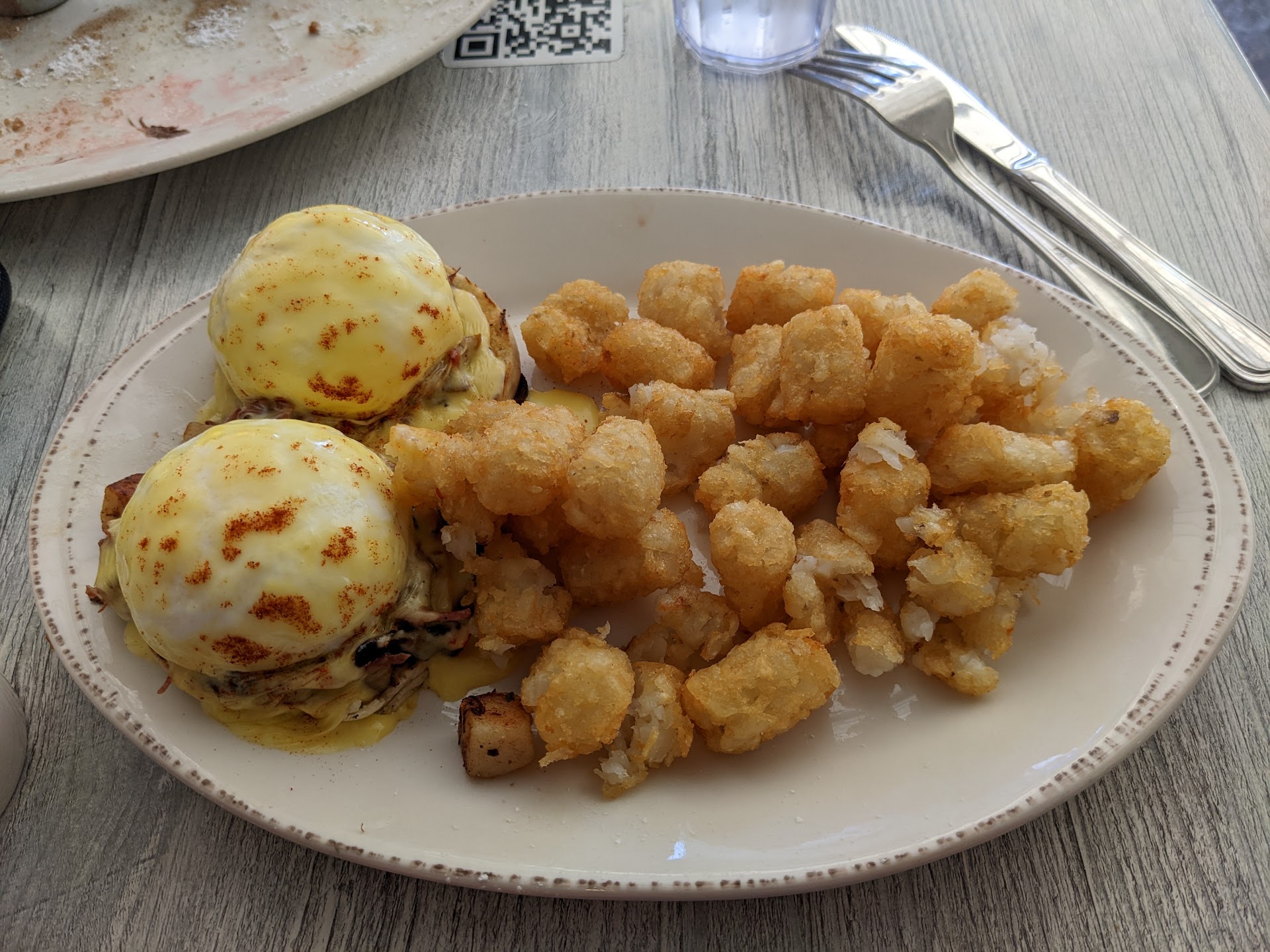 Syrup has an obsession with tater tots. My plate came with maybe a pound of tots. Mashed tots. Why do they mash them? They half-assedly crush some of the tots with a fork, as if their diners are incapable of chewing their own food. These are chain-food Sysco tots. They are nothing special at all; kind of like the rest of the food. Most plates come completely inundated with tater tots. I'm talking two large servings from Sonic per plate, crowding away the rest of the food. Is this how they feel they justify charging people $16 for a flavorless benedict? It's as if they are trying to distract diners with a mountain of (cheaply made) food. The coffee is weak too!