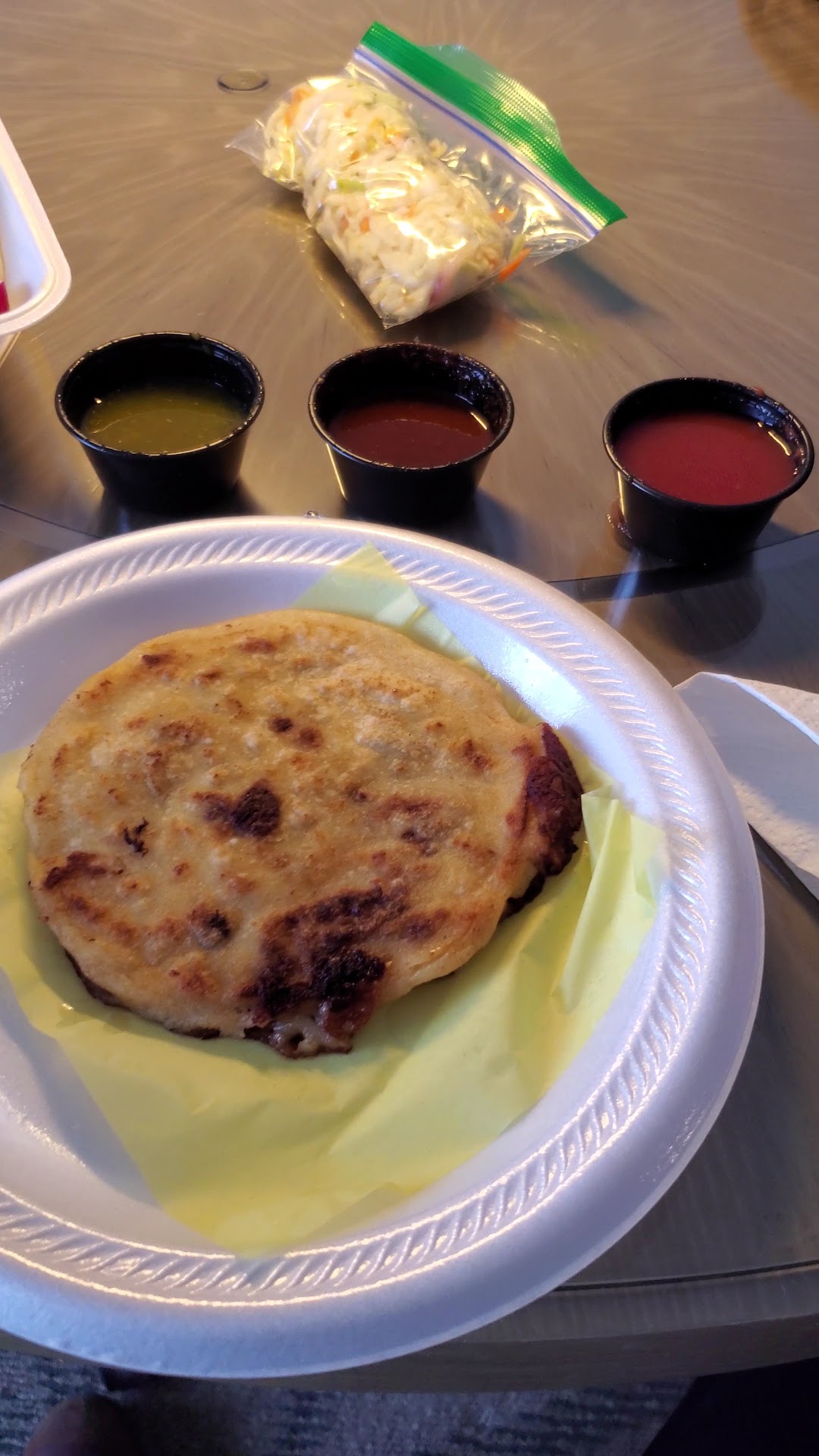 It probably didn't help I was hungry and was a hot day as I proceeded to eat pupusa it was soggy on bottom whether that was from how they make them or waiting on water that was not taken upon order I'll give befit of doubt. The fla or was not i.pressi e or special while did taste fresh.