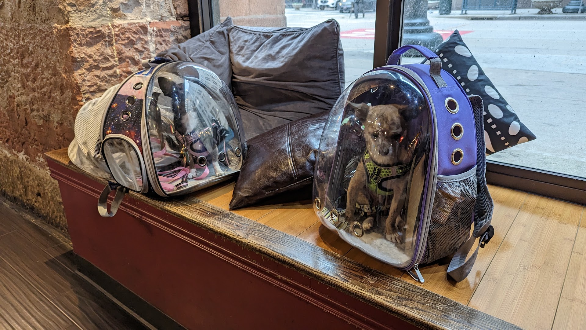 We came in quietly with the traveling chios in their space ships. When the family complimented the bags, we turned around to reveal the little stinkers, even a few of the customers were surprised. The family started talking to us about their baby poodle at home. They showed us videos of their little fur baby playing around. We asked if we could let the little ones out, they were more than accommodating, they brought out treats for the littles. Not all places allow pets, but we did our best to stay away from the food and in the corner so to not disturb anyone.