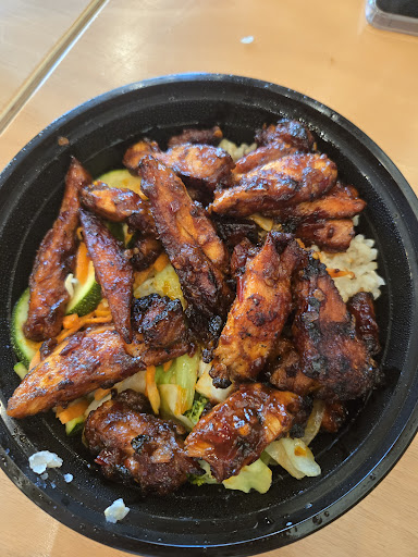 Read moreFour of us came for lunch, and when we showed up, there were no other customers---maybe because the Denver Tech Center is quiet on Sundays. We ordered two salmon bowls, one mad spicy chicken bowl, and a side of fried rice. The online ordering was not working, so I ordered inside. With a small tip, it was $43, and the food was ready after a short wait. There were plenty of seats inside and outside. The patio had six tables, two of which had umbrellas for shade. My chicken was perfectly grilled, and after I finished, my mouth was on fire---in a good way. I would have liked more vegetables: there is a power bowl option, but I want both noodles and veggies. It was overall a good experience except one thing. Even though all the facilities looked clean, -1 point for an empty soap dispenser (the only one) in the men's room. A recipe for an E....