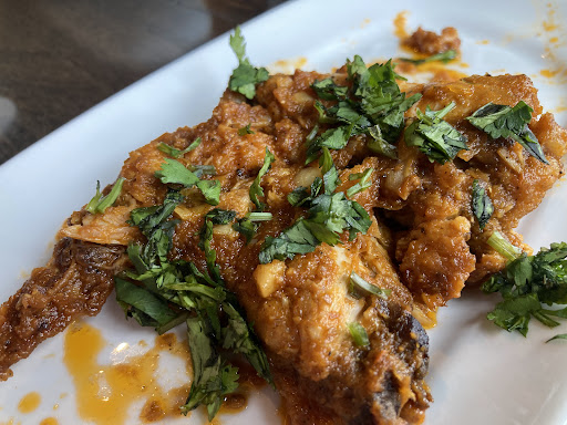 One person's food arrived shortly after that and we urged them to go ahead and eat while it was hot. About ten minutes later my food arrived, the Schezwan chicken. It was nice and hot, interestingly seasoned, but (and I'm not exaggerating here) the chicken was so dry it was actually hard to swallow. I know every culture has its own unique take on the classics, so maybe it's on me that I had a different expectation. I had expected the chili paste to add some moisture to the dish, kind of like a light sauce, but it was just pieces of very dry, chewy chicken jerky with some sauteed peppers and onions.