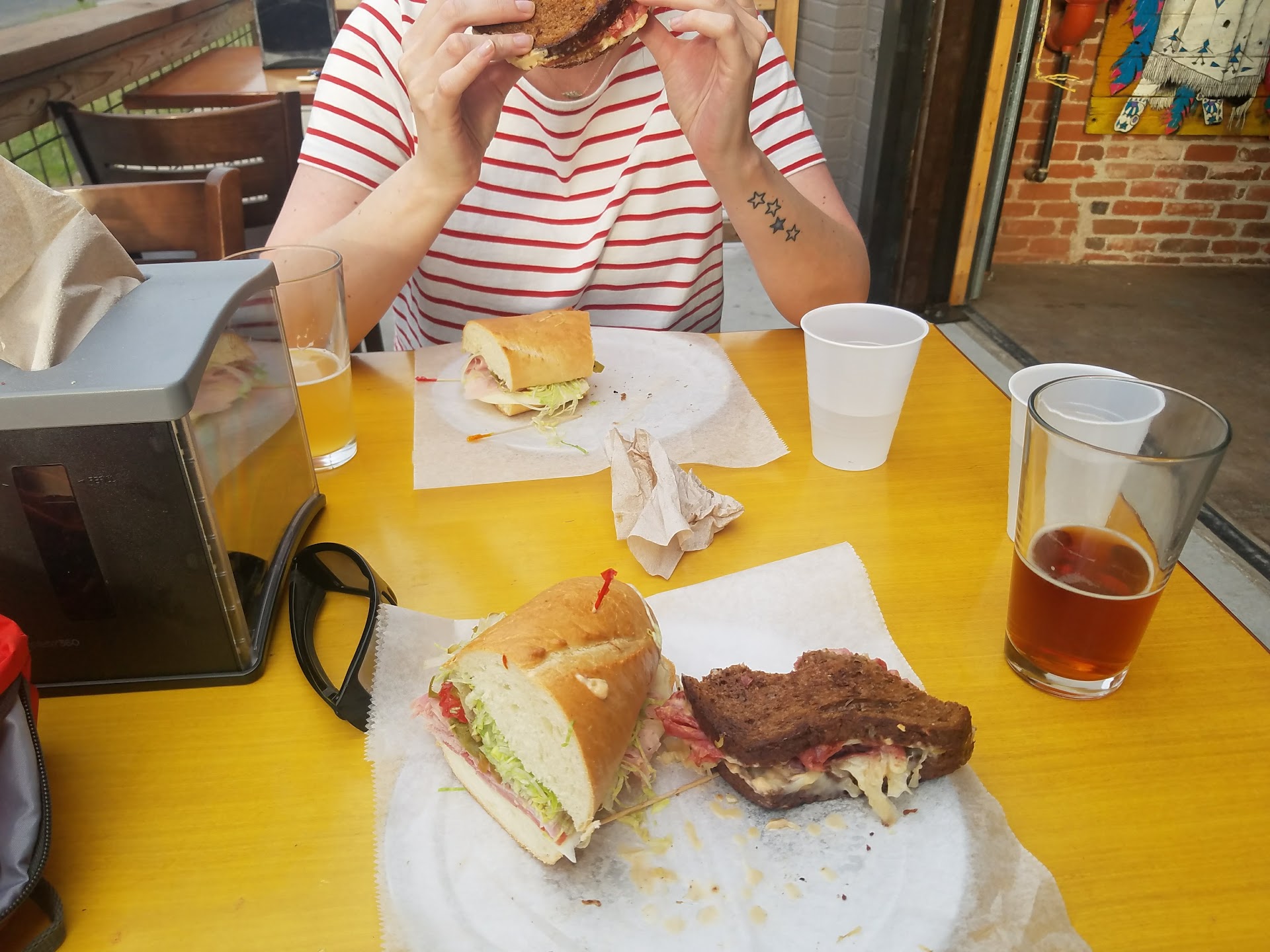 Read moreStopped in hitting the breweries here in the Berkeley area. Decided on Grateful Gnome for the lunch spot and bonus brewery. Very pedestrian beers, nothing super exciting here although the prickly pear saison was commendable. Sandwiches... well we had the tuna, a cheeseburger, an italian, a bacon egg, and a veggie. Also had the gravy cheese fries (outstanding) Decent sandwiches, but nothing earth shattering, certainly not worth the price. The tuna and the burger were for kids, which on the menu advertises $5 half sandwiches for kids. Neither of these were "qualifying" sandwiches. I'll give you the burger (even though i won't understand not having a kids burger), but seriously you can't make half a tuna? Additionally, we waited 15 minutes before even being greeted. Then waited almost 45 minutes for the above sandwiches. It was not busy. Seems excessive for a sandwich place to take 45 minutes for sandwiches when you aren't busy. Maybe 8 tables sitting when we left, about 5 when we walked in at 145. Overall, foods palatable but not outstanding(poutine the exception), beers overall are non impressive. Friendly place, decent atmosphere, just gotta get a hang on service and quality, or bring the prices down to meet the...