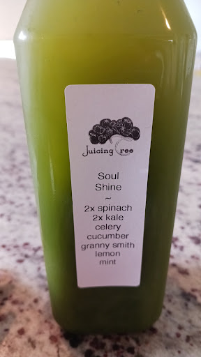 Read moreThe Juicing Tree is everything a raw organic juicing establishment should be. Their juices are...of course...raw, organic. The juices are not heated with pasteurization. The heat destroys the reasons we drink fresh juice: all of the enzymes are destroyed when juice is heated. All the' little critters' are left intact at The Juicing Tree. The enzymes are what our bodies need to be healthy and if needed, to heal. There is no sugar or preservatives or additives. My tummy loves this juice! I have IBS and my colon knows when I'm giving it "junk food". Juice from The Juicing Tree will likely do a speed healing on many health issues. Bought these 3 combos because I wanted lots of greens, which are super-healing: Green Wizard (drinking now...yummy!), Soul Shine, and Insalata. These 3 all have multiple greens plus other veggies + herbs, and one or two fruits that make them taste great. Thanks to The Juicing Tree for juice that is the way nature intended for it to be. I hope we can all support this wonderful business...perhaps they will open up a couple more locations...