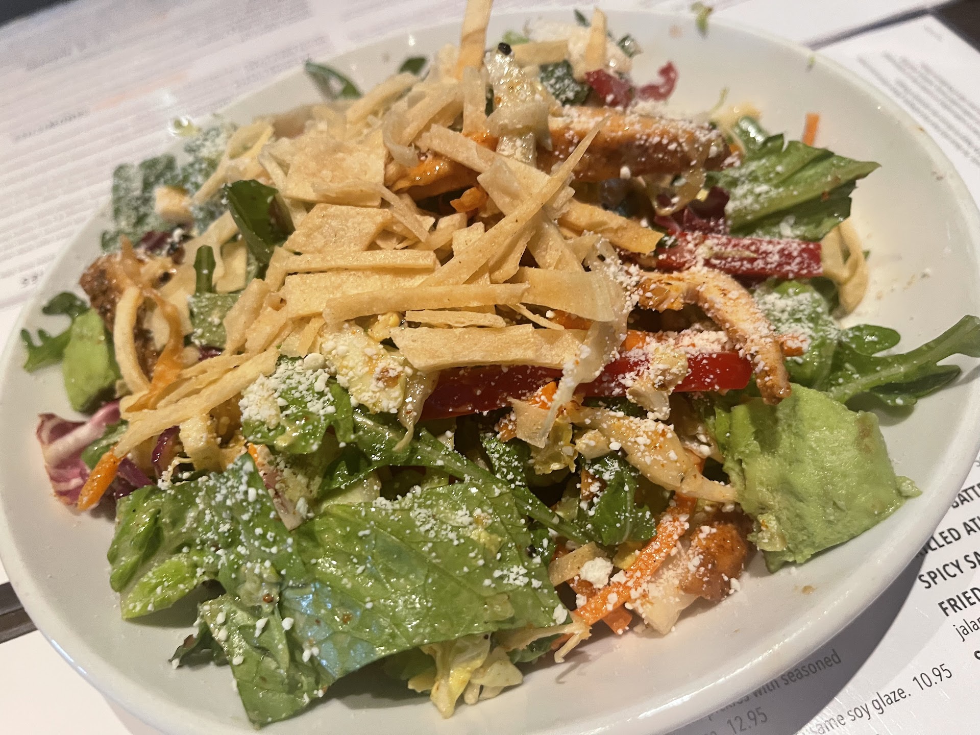 We were seated quickly, however it took our server a few minutes to get to us. We started with the spicy fried chicken sliders, which were good, not very spicy. A small chicken tender on a piece of bread but had good flavor, 6.5/10. We decided to split a southwest smoked chicken salad, which for $20 was a fairly smaller salad. I found the chicken to tasted like it had been made a day or two before. All in all a 7/10. For entrees we had the cheeseburger, this was very good, great amount of flavor and cooked well 8.5/10. The fries were pretty good, I found that some were cooked better than others, but an 8.1/10 on the fries. I don't know why I decided to get it but I went for the grilled ribeye steak, it claimed to be 12oz and seasoned with their rub, but there was no seasoning or garlic butter as they claim. The steak was a very thin piece of steak and it was overcooked and tasteless 1.9/10. I had the server talk me into adding shrimp to this, this was another mistake, 4 over cooked, tasteless shrimp, no seasoning, all you could taste was the charcoal from the grill 1/10. The asparagus turned out to be one of the better items on the plate 6/10.