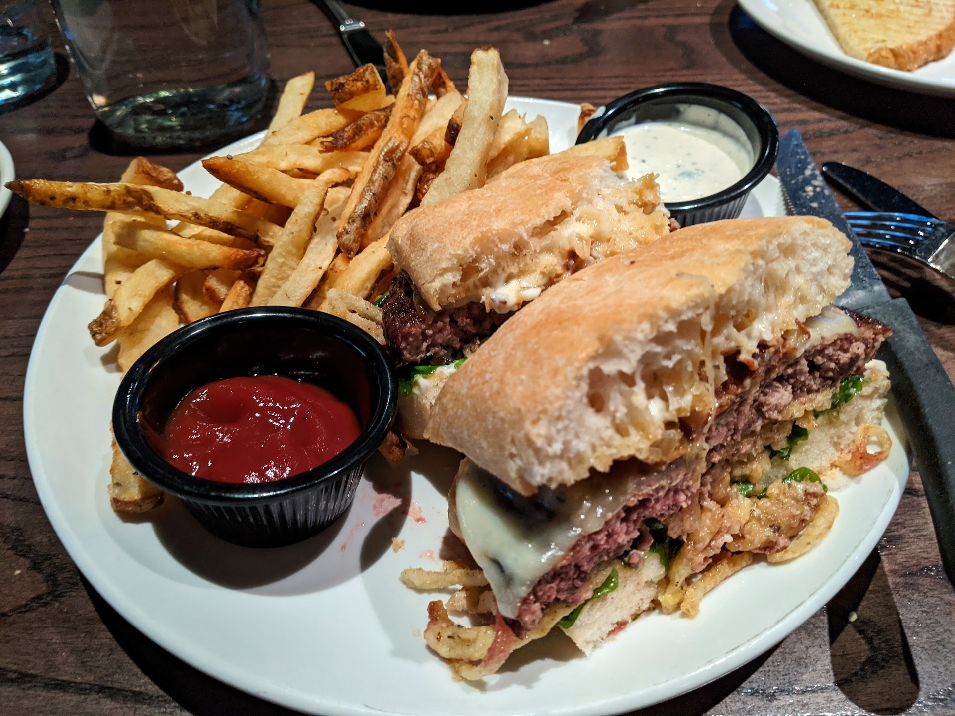It was hard to find any street parking. We ended up in the parking garage behind the restaurant, which was $15. I would say for our $130 meal (including tip) for two of us, there are a lot better option in town. If you are going to eat here, try some of the other dishes. A lot of the food that passed us looked pretty good. I may come back for a burger, but not...