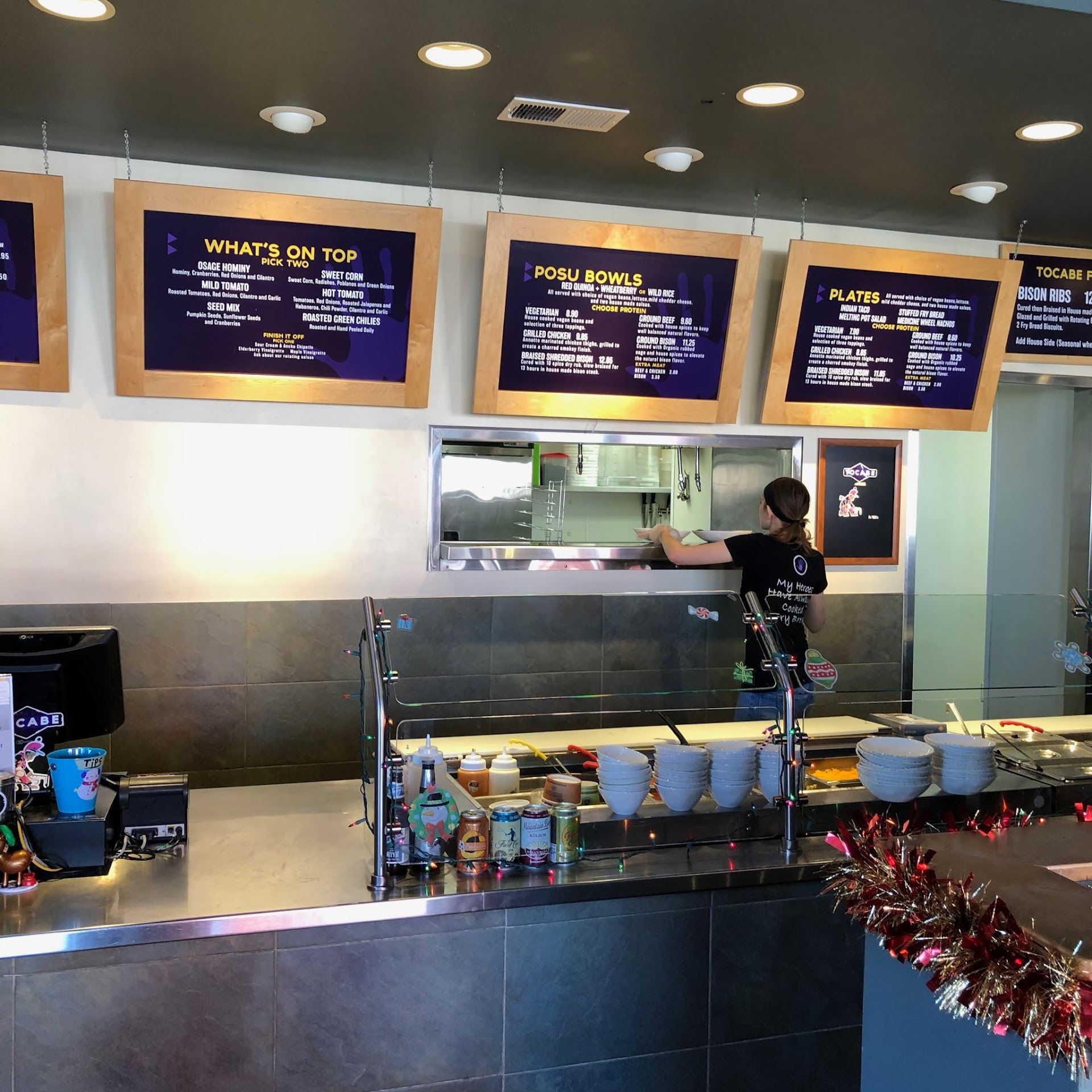 Additionally, I explored The Plates, which offer a range of options including vegetarian, grilled chicken, ground beef, ground bison, and shredded bison. The Posu Bowls presented a similar selection but with the choice of rice or fry bread, making it a versatile option for diners. The "What's On Top" section introduced an array of toppings like sweet corn, hot tomato, roasted green chilies, seed milk, mild tomato, or Osage Hommy, allowing for a personalized touch to each dish.