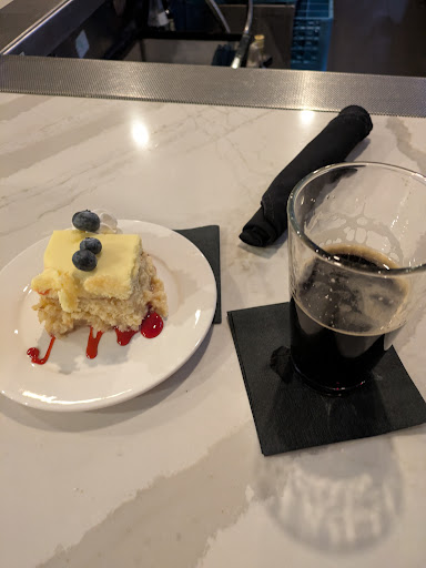 I made my way to the bar and the barkeep (Ben with his blissfully short and easy-to-remember name) poured me some churro stout. This is a fantastic invention it turns out. While the churro flavor is... aspirational at best, it's an incredibly solid(stout?) stout and I'd happily drink a barrel of it. I paired it with their lemon Tres-leches cake and felt alive again. I followed it up with their Beet and Pear salad, with a nut allergy warning which was brought out by the floor manager with his personal assurance that no walnut had touched the plate.