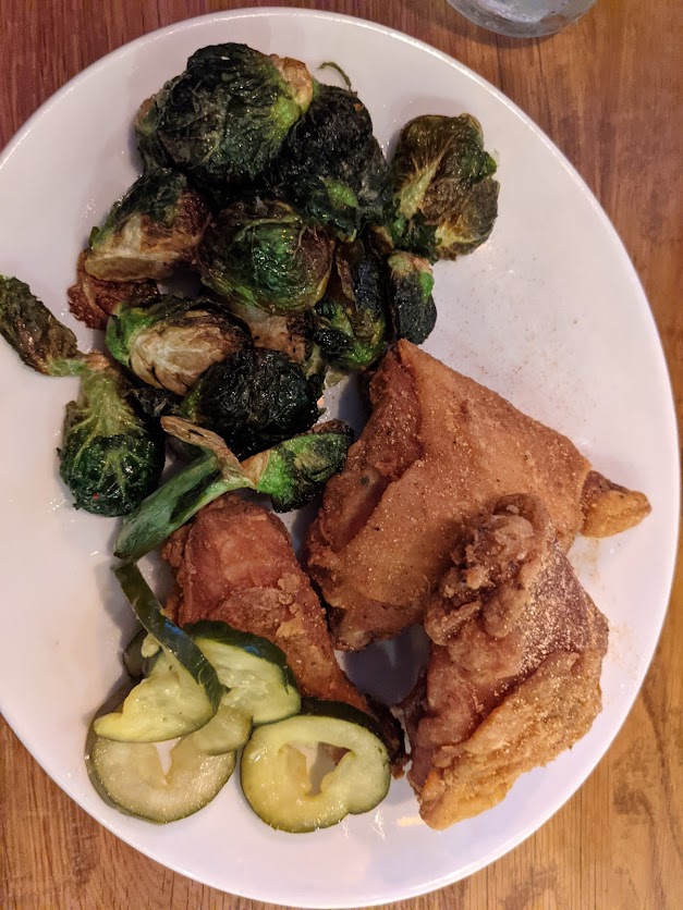 My husband had the dark meat honey dusted fried chicken but was a bit disappointed with it. He said that for most of the pieces the skin was more hard than crispy and by his description it actually seemed like maybe the chicken was made in larger batches ahead of time and then set under a heat lamp as they awaited order. The food came out extremely fast after we ordered as well, so this seems plausible. He did say that the last piece of chicken he ate was much different: juicier, crispier, and quite good. He got the brussel sprouts with his meal which were also pretty good.
