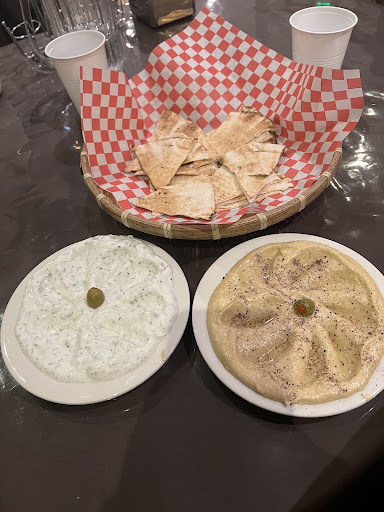 Now the real fun begins. Our order of humus came out which was store bought pita and it was cold. The humus had a pile of oil on it that wasn't olive oil. It tasted like maybe canola oil and hopefully it wasn't soybean oil. The olive they put on top was the lowest quality olive I've seen in a long time at a restaurant. Then our falafela came out which was just chickpeas with some sesame seeds in it. No other spices or flavoring I could detect. It didn't have much flavor at all. The dipping sauce tasted like maybe sour cream mixed with dill pickles, I'm honestly not sure.