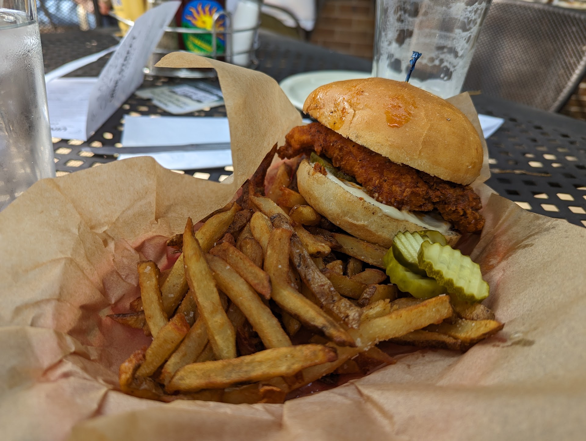 Overall food for my party was good and people enjoyed themselves. Soup was a little stodgy- like if was getting down to the bottom of the warmer. The temphee Reuben was well liked. Great fries. Large selection of their tasty house brewed beer but very little in NA. Got off on wrong foot with lost reservation which suggests sloppy systems. Service was attentive until the ball got dropped in several ways which suggest management and supervision problems (not related to our server).