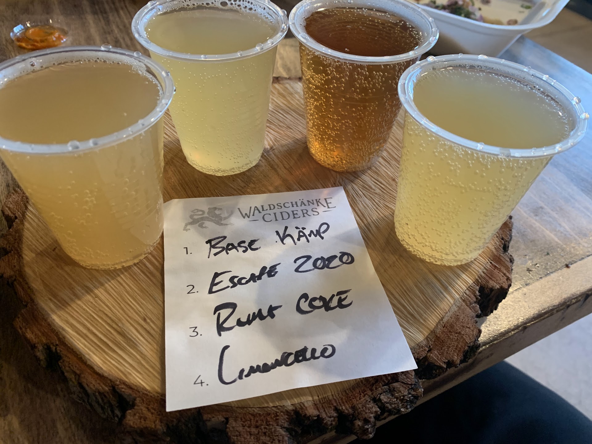 If you love craft hard cider (or you haven’t yet discovered that you love it), get thee to Waldschanke Ciders! I was in town visiting my brother and sis-in-law for Christmas, and we stopped in for a flight on a drizzly Christmas Eve afternoon. Walking inside is like stepping into a warm and cozy European pub, with wood tables and benches. My brother suggests ordering a flight (you can also order pints) so we all chose several ciders and shared. Let me just say, this cider is the real deal. The Base Kamp OG cider is made from the recipe used by the family’s grandparents in Switzerland.