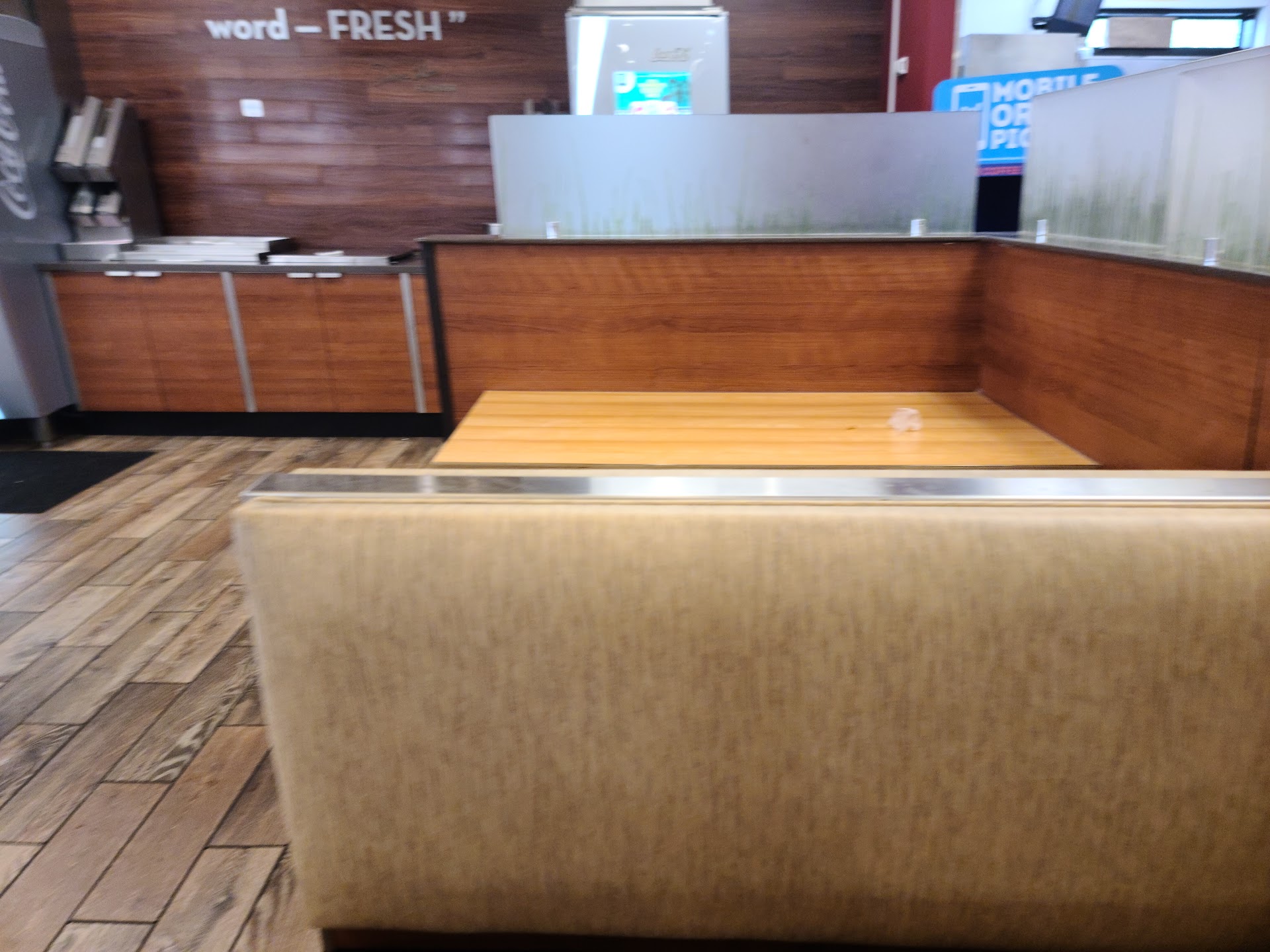 Read moreSeriously a horrible place! I love Wendy's, but this place .. ugh! It deserves 1 star just for the man who made sure the lobby and outside were clean, he deserves it. Other then that, the staff seems to not know what they are doing. The lady at the register up front seemed to be a manager, since was wearing a black shirt, she didn't listen at all! I had to repeat my order to her like 5 times! How hard is it to understand, "I would like the 4 for 4 with the Jr Swiss bacon cheeseburger" Then to add, after I ate half my burger I saw it was bright pink on the inside! Seriously?! When I took it to the front to show them they just tried to get me another burger, which I didn't want cause I just ate my food, & my burger was way under cooked making me loose my appetite. I kept asking for my receipt cause the lady at the front didn't give it to me, nor put it on my tray, they didn't want to give it to me!
