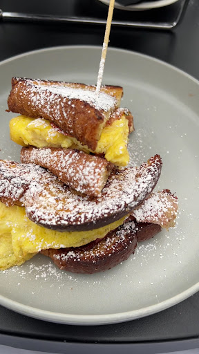 Let’s talk food because it was delicious. I ordered the brunch platter which felt like a fun, shareable little celebration of everything you crave on a weekend. Every item was fresh and flavorful with that perfect balance of indulgent and comforting. The star of the show for me was the French toast sandwich with pepper jam. That pepper jam hits you with the perfect sweet meets subtle kick, sandwiched between fluffy French toast that tastes like it came straight out of someone’s home kitchen where love is a major ingredient. It is one of those dishes that makes you pause for a second, smile, and take another bite just to confirm it is as good as you think it is. I also ordered coffee with almond milk and even that tasted noticeably well curated. Strong, smooth, and rich enough to give you that weekend boost.