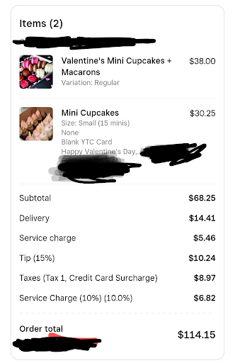 Read moreDisappointing first time experience from this location to deliver to my boyfriend and his kids for Valentine's day. Missed half my order with the messaging. The thing is I paid almost $38 in Service charge, delivery charge, tip and another service charge out of the $114. They did refund the missing order and a small service charge fee, which still does not make up for poor experience and the other fees.