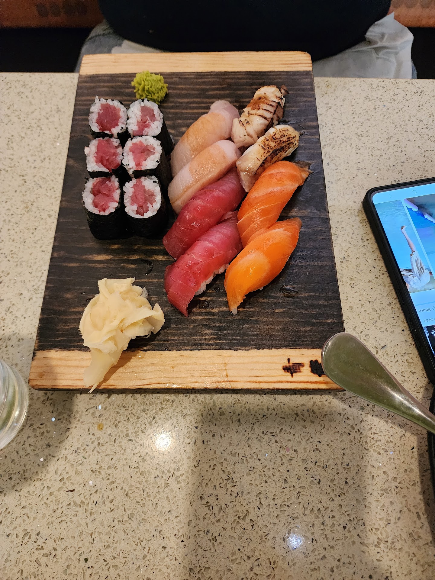 My father had the sushi plate and thoroughly enjoyed it. He was very impressed with the thickness and quality of the cuts of fish.