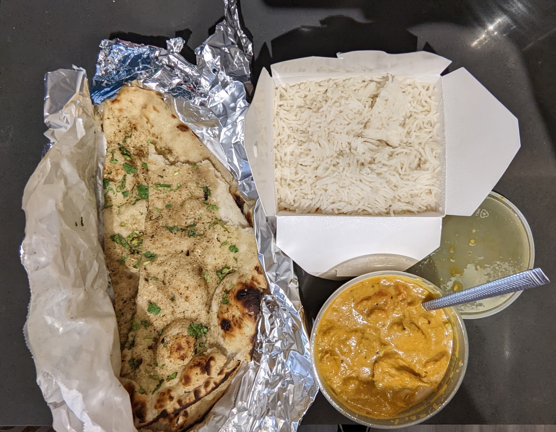 The curry was so enchanting that I almost forgot the garlic naan awaiting me... As for the naan, well, a picture speaks 1,000 mouthwatering words. In short, this would be a showstopper at the Gilroy Garlic Fastival.