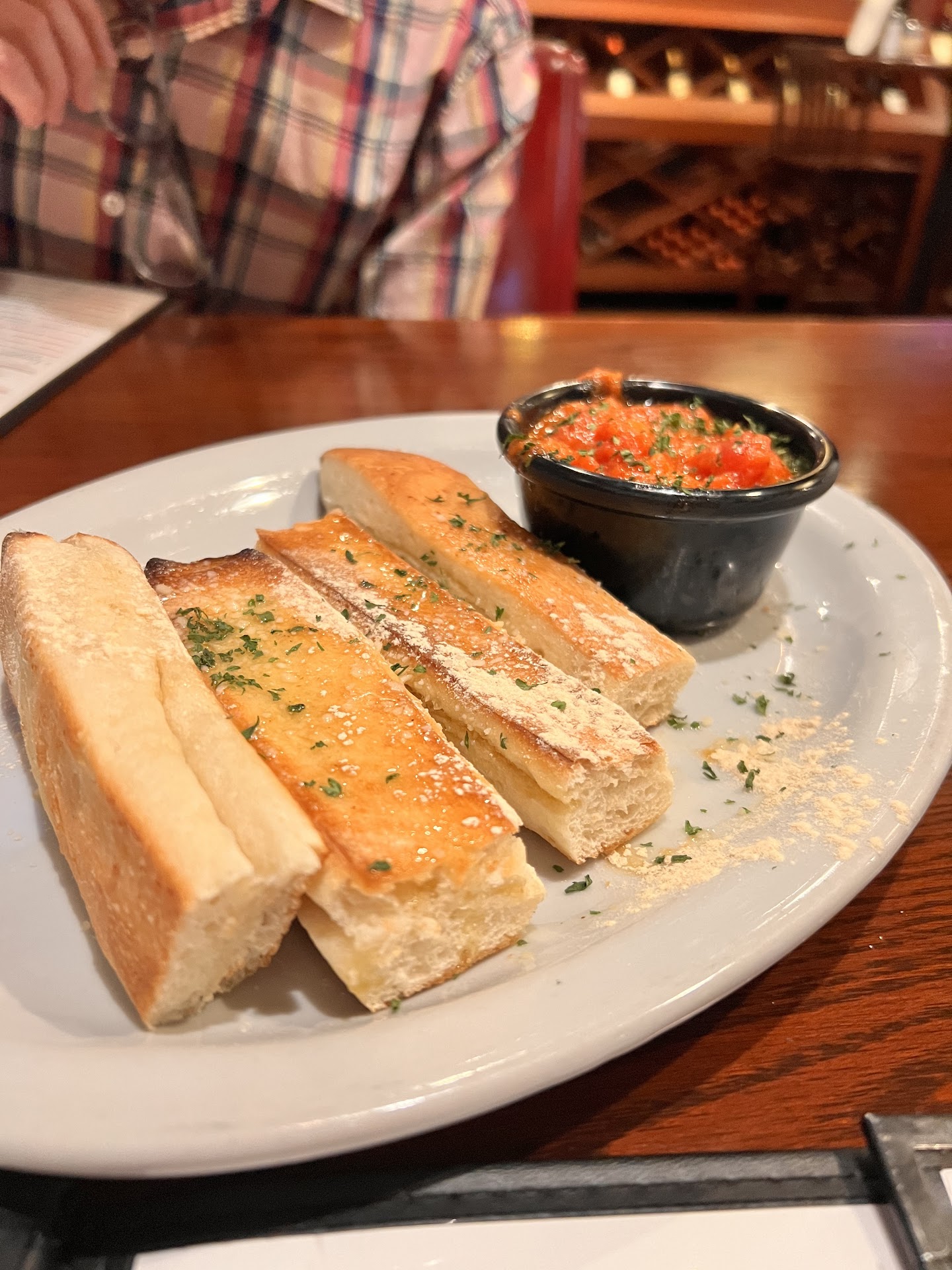 Read moreThis breaks my heart to leave a bad review, but my experience leaves no other option. We were seated promptly and were excited to dig in. Our Server was quick to the table. (this was the last time). We were given bread (kind of stale) and waters. Our Server took our drink order and when he returned, our dinner order. We ordered an appetizer, two dinners, one with a salad. The appetizer was the vegetarian antipasti. This is my only complaint about the food. The plate came with what seemed like 50 cloves of garlic (awesome we love garlic), olives, caprese and chopped artichokes and red pepper. Keyword CHOPPED. What did not come was any vessel to put crushed garlic or chopped peppers/artichokes on. Any other antipasti plate would include crostini, or crackers or something. Not here. It is what it is, we were confused but fine. To top all this off, the dinner salad came at the same time as the appetizer. So much for enjoying any sort of flow to the courses, just throw it all on the table. This became even more so when 2 minutes later (no lie, immediately after) our dinner dishes were delivered. We barely got a chance to figure out how to eat chopped antipasti without bread before our food was right in front of us to get cold (I had not even thought about my salad yet). NONE of these dishes were delivered by our Server. We actually never saw him again until we were done with all the plates still on the table and we had to ask someone to go find him. It was not until then that he asked, "do you want another drink", "do you need more water?" (our water glasses were long dry). "Do you want desert?" No Un-Server, we want boxes for all this cold food and our check. I have not left anything under 25% of a tip since Covid, my rule before that was 15% was for the absolute worst service I could have, which I never had before. I left 10% tonight. I don't feel bad, I should have left 5% and that should be for the attentive server around us who summoned our server...