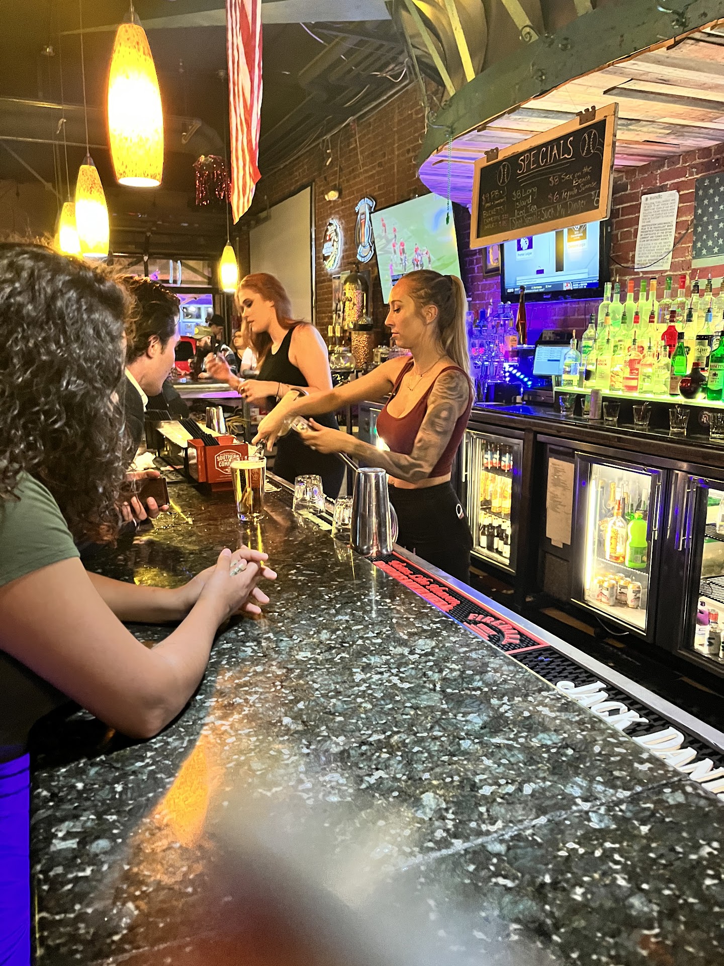 My friends and I were hopping around, and decided to give Zanzibar a try. There were maybe 30 patrons at 10pm on Saturday in their huge space, which probably should’ve been my first red flag. I went in with a group of 5 friends, and three of them got served right away. My friend and I went up to the bar, and were actively ignored by the two female bartenders (pictured) and a male bartender. Everyone else was served, and they even served people BEHIND US. We waited for 25 minutes, tried waving down any bartender, and still nothing, while the bartenders took shots with their friends, were on their phones and vaping. It got so bad to the point where the bartender went up to a girl next to us, and the patron even said “serve them first, they’ve been waiting forever”, and the blonde bartender responded “yeah I’ll get there” and continued to ignore us. Then, the staff/security guard came up to us and told us to stop pressuring them. My friends who had been served had finished their drinks, and we still had not even been approached, so we left without anything.