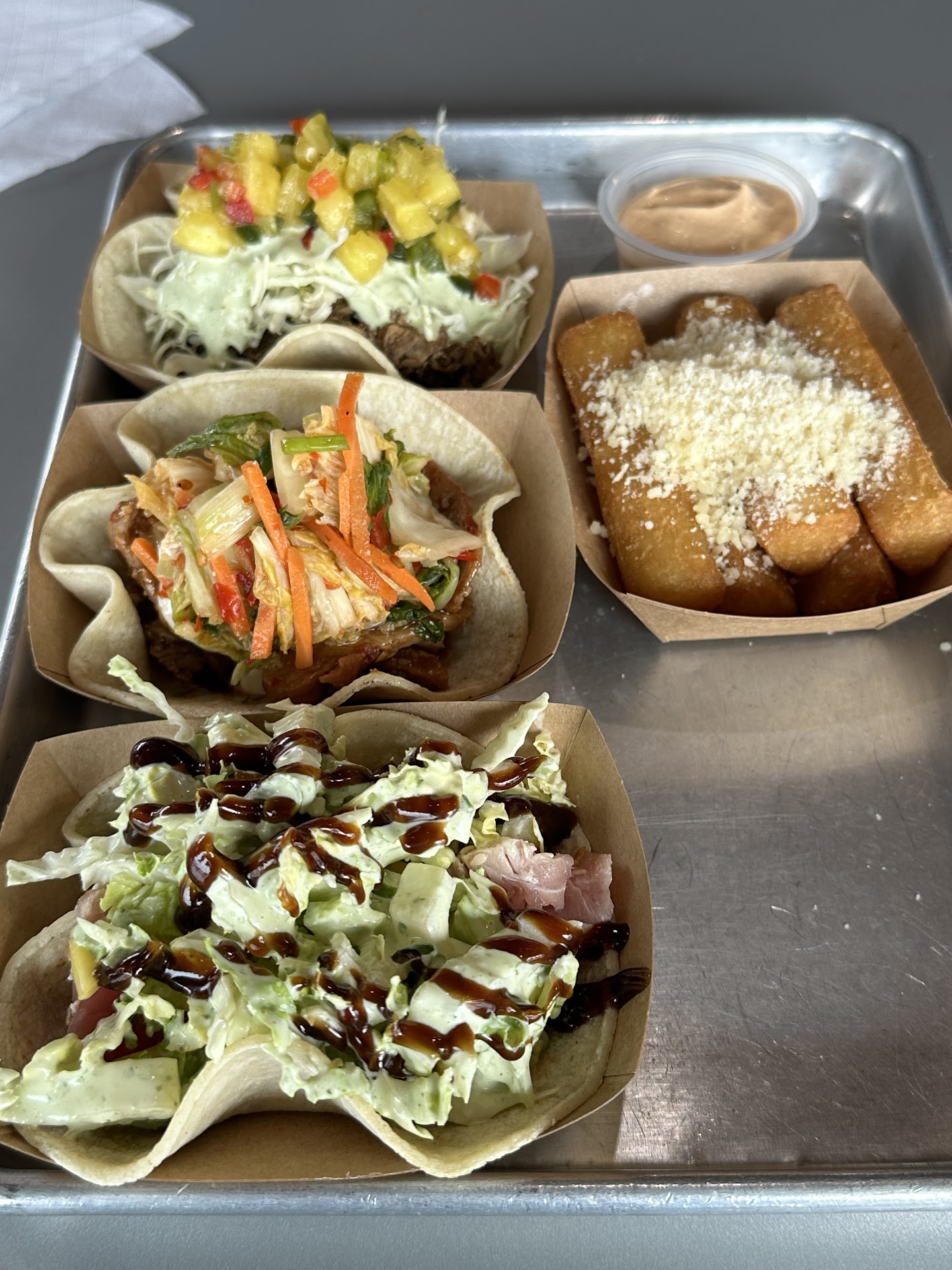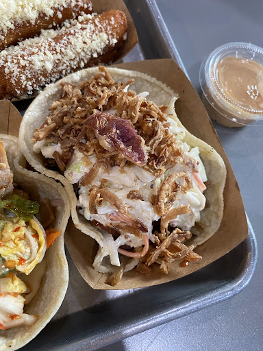 The buttermilk chicken taco had so much going on â tomatillo, bacon,⊠and the fried chicken was on point. Korean BBQ is Spicy. 5.5/10 for someone who likes spicy. đ¶ (probably 8.5/10 for someone who doesnât). Al Pastor was incredible. The brisket taco is the best out of all of them, but thatâs just my jaded opinion.