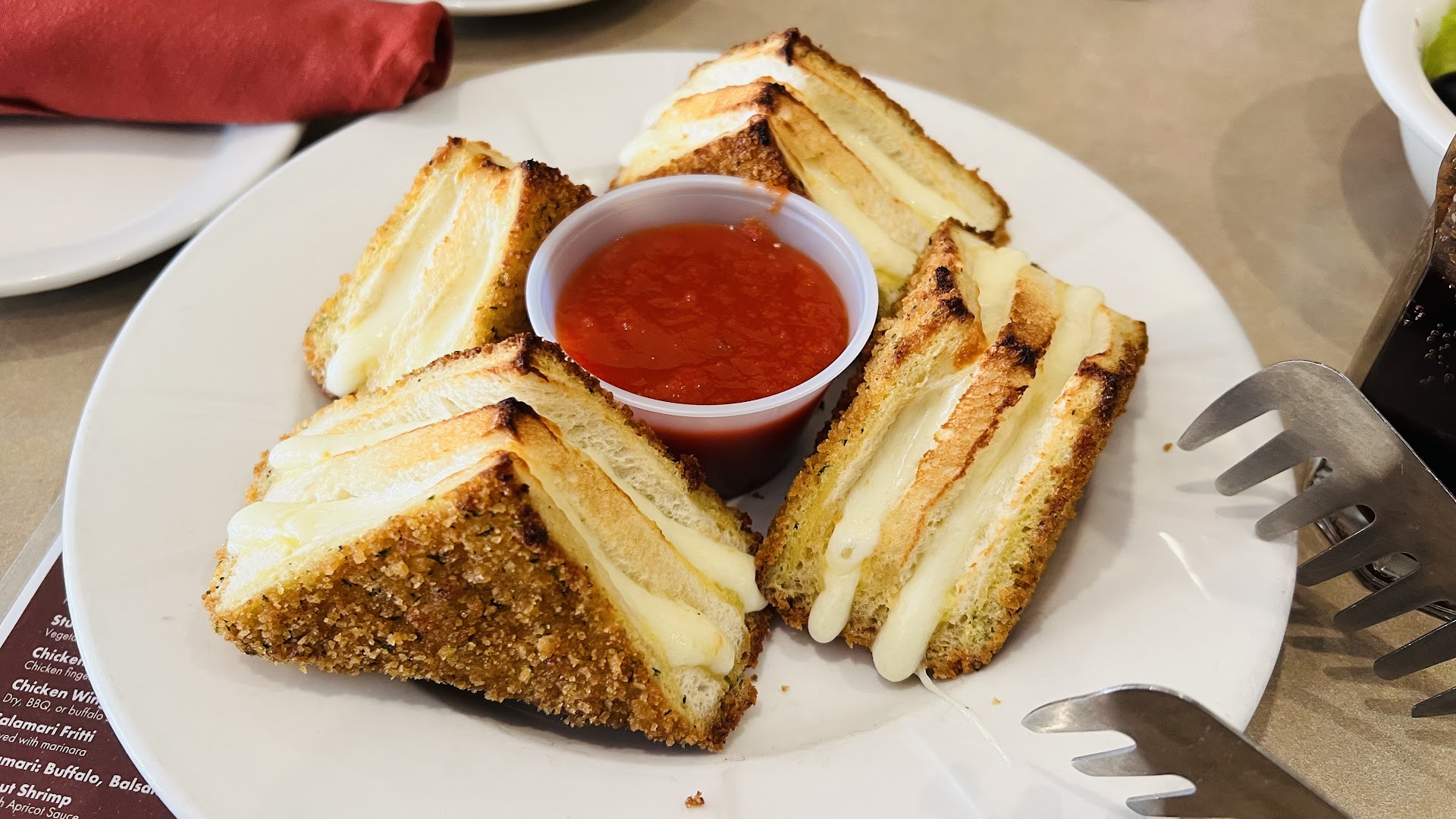 Our children ordered ravioli and chicken fingers, and they seemed to enjoy the food. Our salads and soup were also of acceptable taste and quality. However, my wife and I both ordered Salmon Escarole, and after a few bites, we both independently concluded to contract the culinary experience. We concurred that both the texture and unexpected fishy flavor of the salmon was not normal and certainly not desirable.