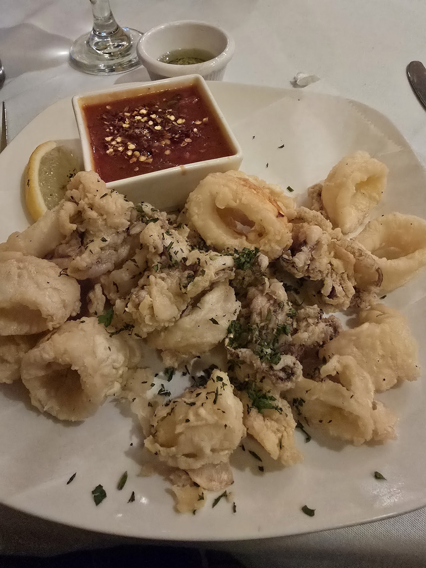 Started with Calamari. While normally not a takeout item, I am super close so took a gamble. Calamari was still tasty when i ot home. Also ordered Chicken parm dinner which was served with salad or pasta. I opted for pasta. Dinner itself was also tasty and made for an overall great meal.
