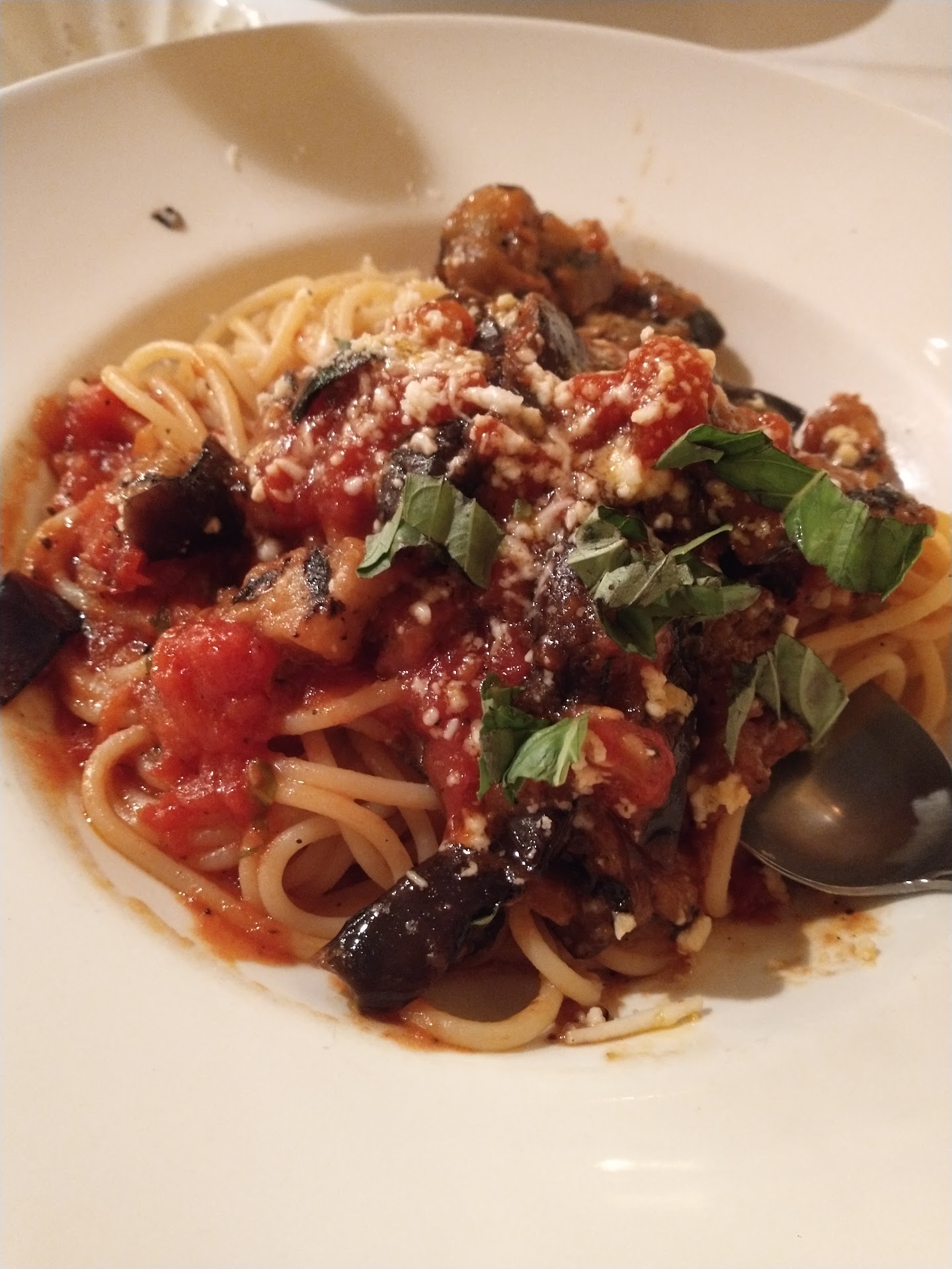 We try rice balls everywhere we can find them, and the ones here are some of the best we have had. We had the rice ball special, served with absolutely the most delicious Alfredo sauce. The bread is baked there and it was very soft and delicious. My dining companion had the chicken and eggplant parm, it was a huge portion and the chicken was very tender. The spaghetti with shrimp and broccoli rabe was a smaller portion of pasta with 4 shrimp, swimming in a really flavorful garlicky broth.