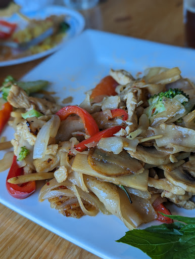 Read moreThis is at a nondescript place by Depoe bay and I wasn’t sure what to expect there. However nothing to worry. First off, it does face the bay opposite to the beach. The owner clearly loves plants and succulents - there are house plants all over the restaurant, including the bathroom. They had only a few tables filled in at the late hour that we arrived but they got busier even at 3 pm in the afternoon. We placed an order of basil shrimp rolls for our appetizer. While my husband had a beer, we had Thai ice tea and young coconut water to share. The coconut water was fresh and refreshing!! Perfect. The shrimp rolls were quite good due to the element of the fried Thai basil . My son had pad kee Mao with chicken and it was as good as we all expected. My husband had the green curry and thought it was excellent. My curry powder fried rice was so good - full of veggies, spice and finger licking good. Because we were in there past lunch hour, unfortunately we had to order the dinner portions which were quite huge. Lot of leftovers! The owner walked around seated tables occasionally checking on everyone. Later our server took the young coconut to split it and give us the coconut meat. Appreciated it and...