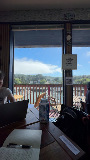 Notes: There’s no WiFi unfortunately, but there was AT&T and T-Mobile coverage, so we were able to hotspot. The staff were super kind and had no issues with us posting up in the corner from opening to closing. They had super cute framed works of art from local artists hanging on the walls that you can purchase. I was so close to buying one but unfortunately did not have space in my luggage. We did pick up a post card by one of their local artists done specifically for Whale Bites. There was a whale watching museum and tour company right next tour (Carrie & Koda) that we would’ve loved to see and potentially book a tour. But unfortunately they were...