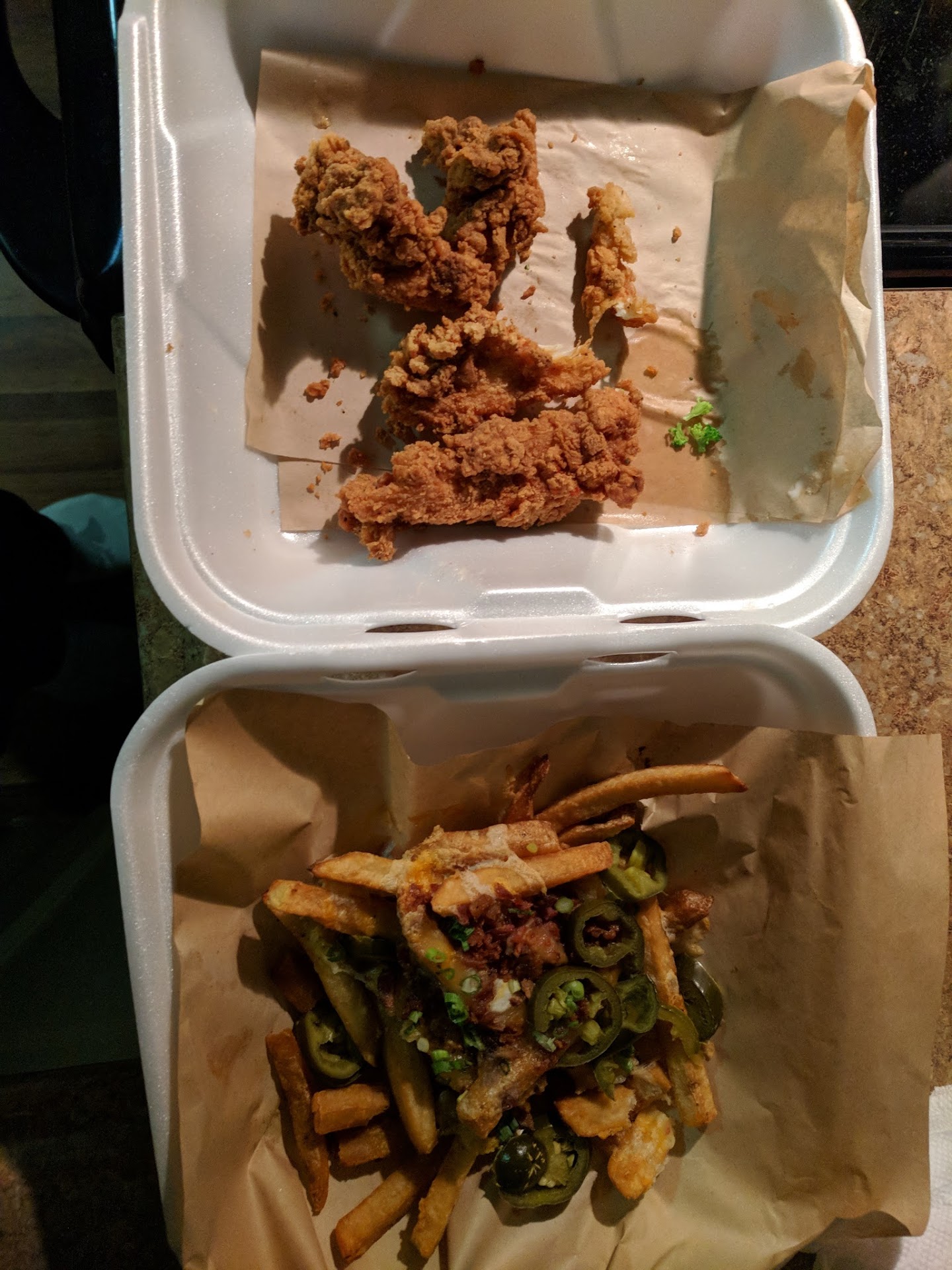 Read moreWow. Last night (4/4/19) myself and two friends ran to Chili's around 8 pm. To get to our booth we walked through trash on the floor which I let go and assumed it was a table with kids maybe throwing things on the floor and it hadn't been gotten to just yet. Next we used the restroom which wasn't very clean but ok. Our menus were sticky with food or sauce or something. Finally a waitress comes over to ask if we want drinks, Molly C. our receipt says but she didn't greet us and let us know her name. It took a longer than usual time for 2 bottled beers and 1 water to make it to the table. It wasn't busy and I should have mentioned that on our way back from the bathroom there was a group of employees huddled in the walkway that didn't bother to move as we exited the bathroom. So EVENTUALLY we got our drinks and we waited and waited for Molly to come back and take our order. When she did, she gave my friend an attitude about asking for no cilantro in the salad and dressing on the side. So again we wait for 2 salads with chicken and 3 shrimp tacos. And we wait. Molly at some point comes over and tells us our food will be out shortly. Meanwhile, the tables around us that came after us were being served their food. When our food finally came after half an hour, not only did it look terrible, it was not fresh, the hot items were cold and the cold items were warm. There was blackened charred chunks attached to the chicken. The salad had cilantro, the dressing was mixed in, one was missing bravado. SO when we say something she is like I can get you another one it will take 2 seconds.... RIGHT, no at this point we should have left 15 mins ago and we weren't going to wait. She didn't apologize at all for starters but she again acted like we were bothering her. You know we sat there and really wanted to give her the benefit of the doubt that maybe she was having a bad night but she didn't come back. She would go to the tables around us and didn't check if we needed anything like another drink that we could wait 15 mins for. By the time the avocado made it to the table that had gotten left off, my friend was half finished her salad. Once it was clear that we were finished she came to ask if we needed anything. I will never ever go to this place again, I am embarrassed that I...