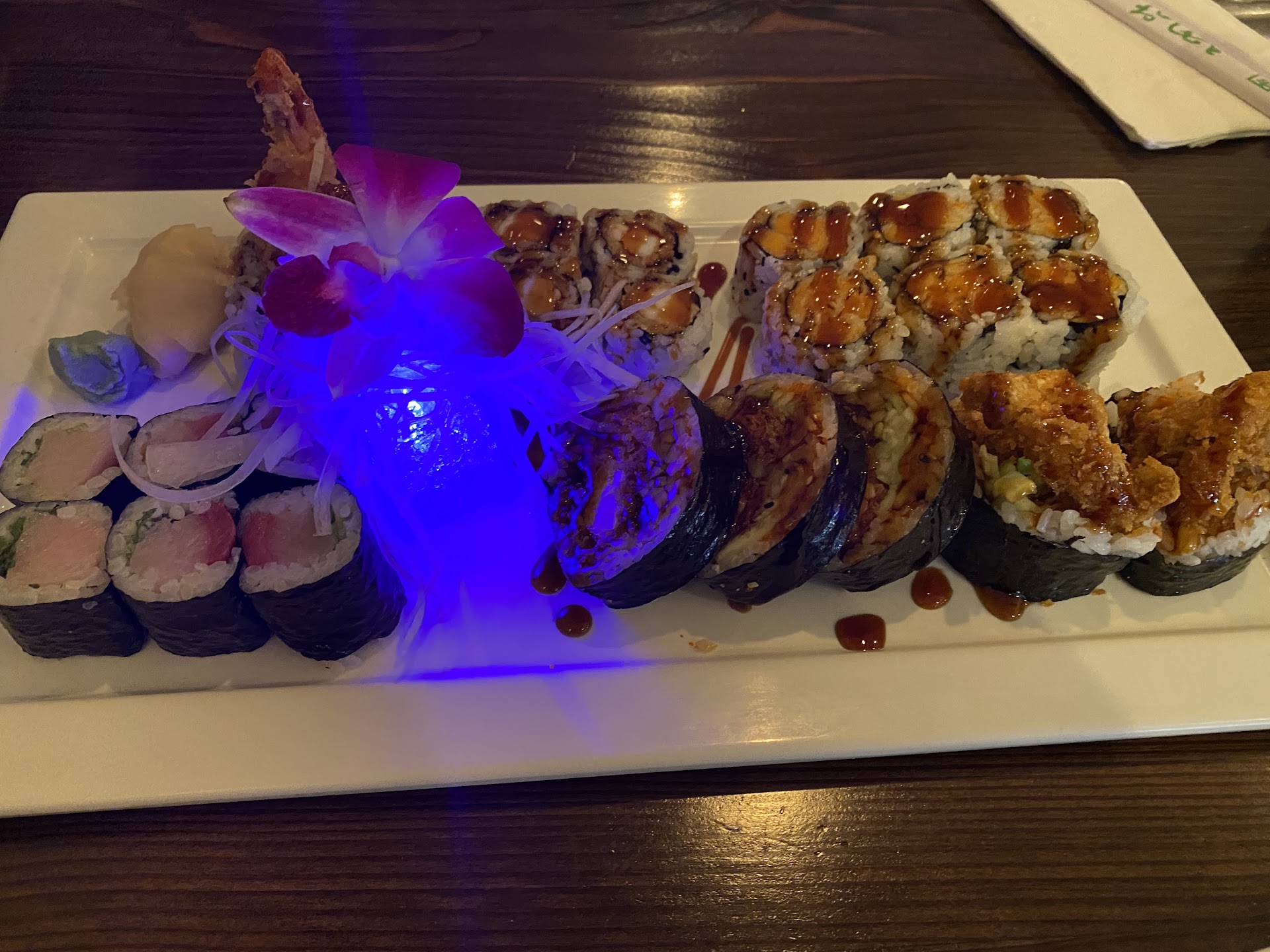 1/7/18- First time trying this place, took my family, Thoughts are absolutely excellent food, and fun experience. Believe me I'm very picky about restaurants of any type, and can hardly find one worth the bill at the end , but I didn't mind paying this bill one bit, it was worth it for sure. The chef who cooked our food on the flat top in front of us was very experienced and made it a very happy moment for everyone. I had the ny strip steak with scallops and shrimp , lomein noodles, and fried rice, All 100% perfect in my opinion, the soup and salad before the meal even was great , the sushi others on my party had was also delightful in size, portion, taste, and appearance. I'm definitely going back as soon as possible, and I leave a nice tip because I want everyone to do the same as I believe if you go out to eat at a decent place to you no matter what type, you certainly should tip well, and of you can't afford it, don't go, but just my opinion, people may...