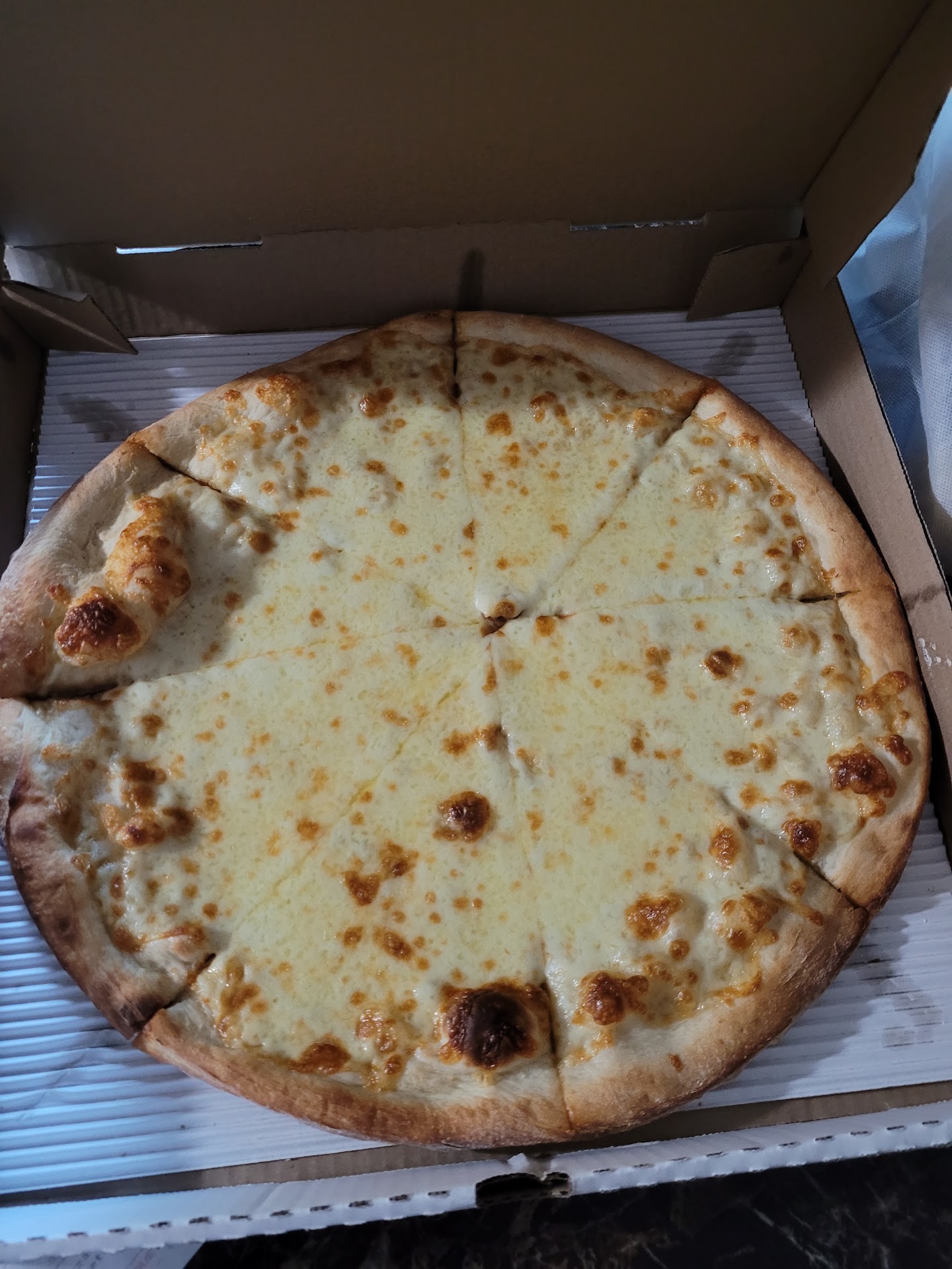 The best thing was that the man who was cutting and boxing the pizzas did apologize for the delay. He was far away from me, but I heard him apologize, and...