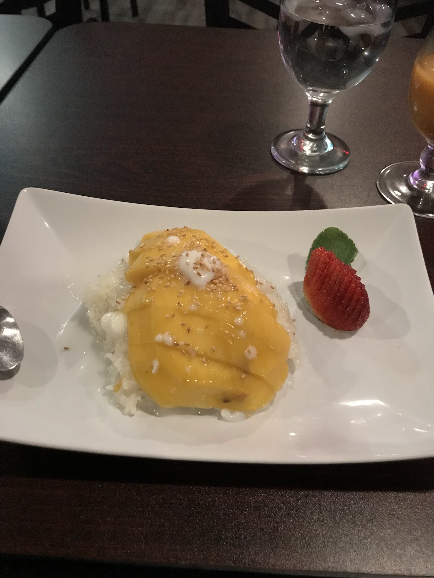 For dessert was mango and sticky rice with a creamy coconut sauce. All too often, I find these dishes to be too sweet. This wasn't. It was just perfect - the right mix of sweet and slight saltiness from the rice.