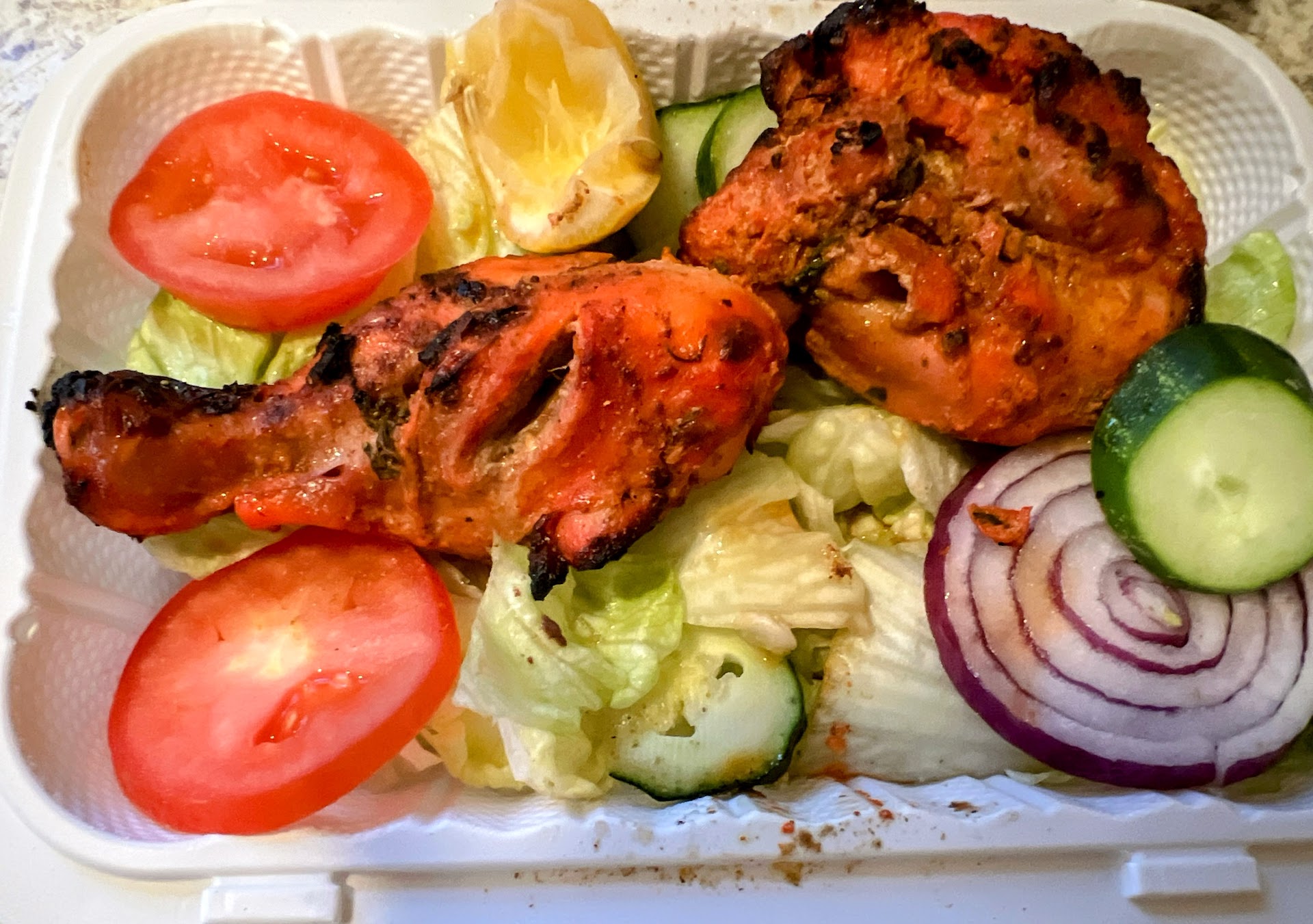 Read moreI absolutely love coming here for fresh Indian Food as well as groceries and produce. I have never come here once and have not felt welcome. This is my new go to place that’s local and the prices are wonderful. I had already served up some Tandoori Chicken in my picture. For the Samosa Chaat…I asked for no onion and also asked for the yogurt on the side. They were...