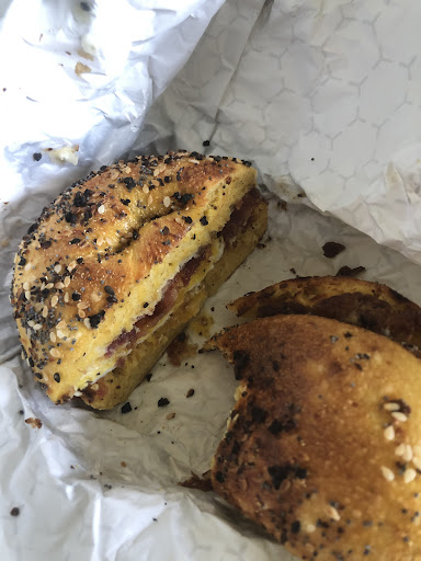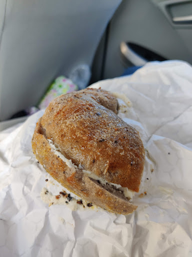 Read moreThese guys do some solid business! All the food is top-notch: the bagels, the cream cheese, the sandwich... all great. The coffee (iced) this time and last was a little off and weak. Could be the brand though. Oh well. Went by on a terribly rainy day and there STILL was a line outside the door 16 people long. Pretty much always busy. A pleasant surprise was a doorman! Polite, pleasant, and kept people moving along. Reminded me of when I was a bouncer. Took me 17 minutes to get to the door, another 6 to reach the register to order, another few for the sandwich (same as my last visit). The employees on the register worked hard and with a smile and kept things moving. Actually, it's the smile that is unusual these days and a welcome difference. Again, These guys know how to do solid business. I recommend grabbing a side of cream cheese for the kids... One was green and had... Wait for...