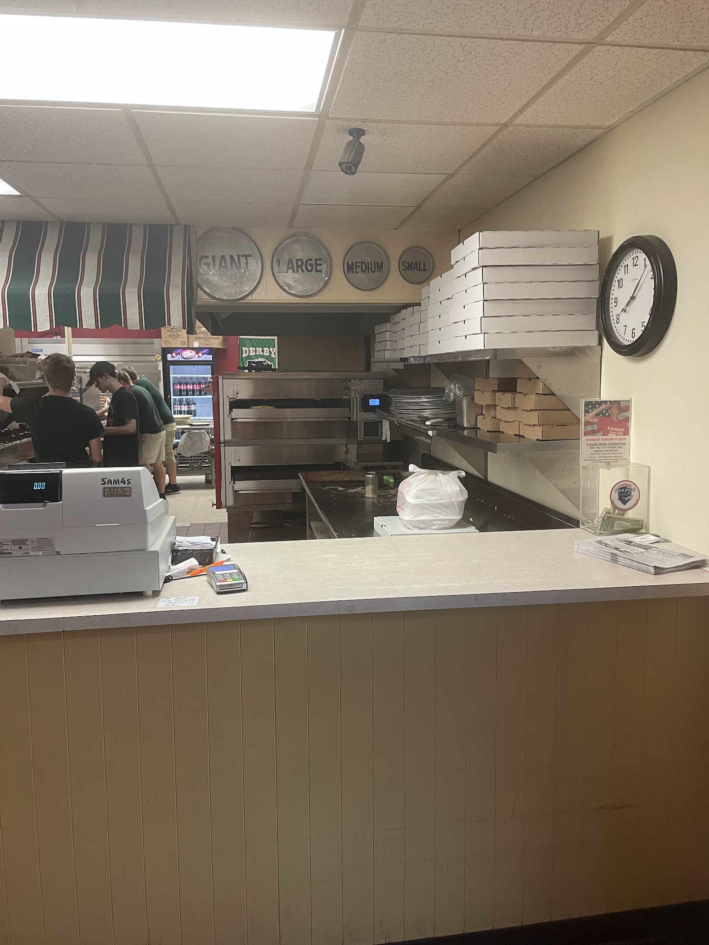She took our drink orders and then delivered our pizzas. After we had a slice or two each she brought the drinks. We realized that we should have ordered the "Giant" size and asked to order a third large. Upon asking, the waitress obviously tried to dissuade us, saying there would be up to a 30 minute wait. With 3 of us still being hungry, we said that was fine. About 25 minutes later, our pizza arrives. During this whole time, the restaurant was not full, social distancing/reduced capacity and all. There was a steady flow of customers picking up orders. We were not asked about, or given an opportunity to ask for refills the entire time. I will be back again because the food is so damn good, but I will probably get it to go in the future.