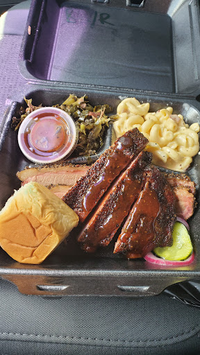 Read moreThis isn't my first time visiting. It is my first time visiting at the new location. The new location really suits them. It gives that country hometown feel and the parking is way better than trying to pull in their old location. Customer service was nice and welcoming. The menu was easy to read and they even put daily specials on a board outside. I got the 2 meat plate ( brisket and ribs side of DELICIOUS collards and Mac n cheese) and the tres hombres which is pulled pork, sausage and I think brisket on a monster bun with a little sauce. Everything was good 👍🏾 THOSE collard greens ......oh man !!! The ribs are awesome too. One little suggestion on the brisket. If u can just put a little char on the fat it woulda been perfect but I just threw it in my air fryer on broil for a few seconds at home n it was delicious. The meat comes sauced ( u can actually go without sauce and it's good but they give u a little cup of sauce on the side. The mac and cheese looked watered down but FAR FROM IT. The mac and cheese was velvety smooth. I was a little shocked at the price for what I got. I expected to be paying more but my total was a little over $30 and some change. The lady gave me the total and I thought to myself well dang I coulda ordered more. I hope soon I will be able to place a order online for pick up. LoL I would be there too...