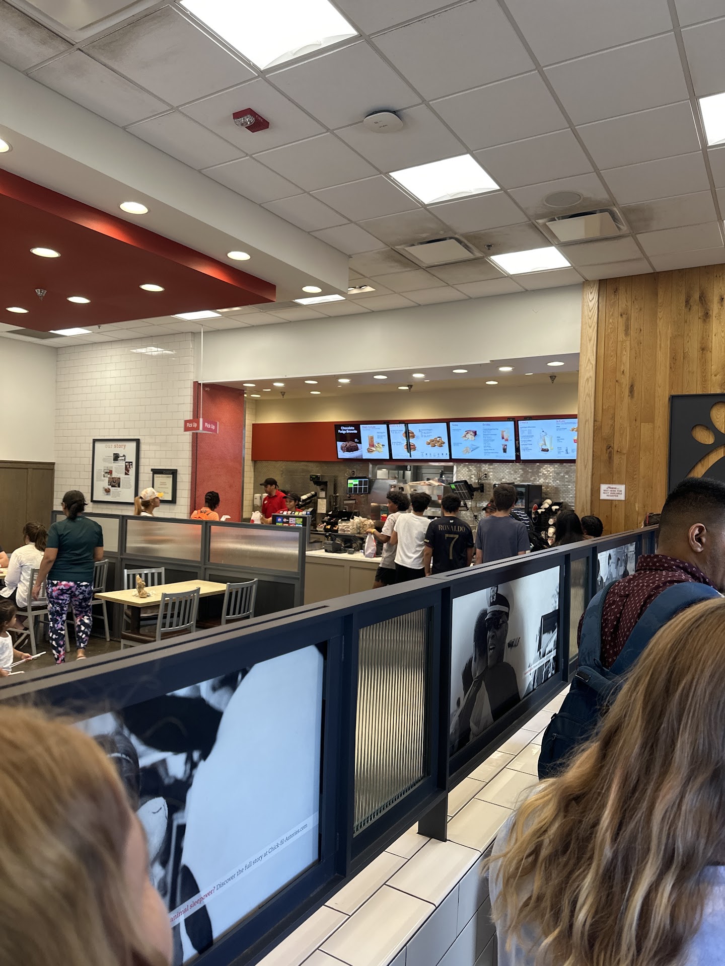Read moreI understand this location is hersheypark, but come on... plan for the number of customers you may have to cater to. The company has a great brand and great food products, however at this locatio. There are not enough chairs to provide seating for the volume of people coming in. No refills, double the standard cfa price for a combo, and they do not honor any cfa cards or coupons. Additionally, the staff behind the counter was inattentive, especially during a meal rush, my wife was waiting for food pickup and a hapless worker (who had been staring off) took no notice of her until she prompted him. Either train your staff to be vigilant and know that they are there for service first, not pal time, or hire staff who will take the...