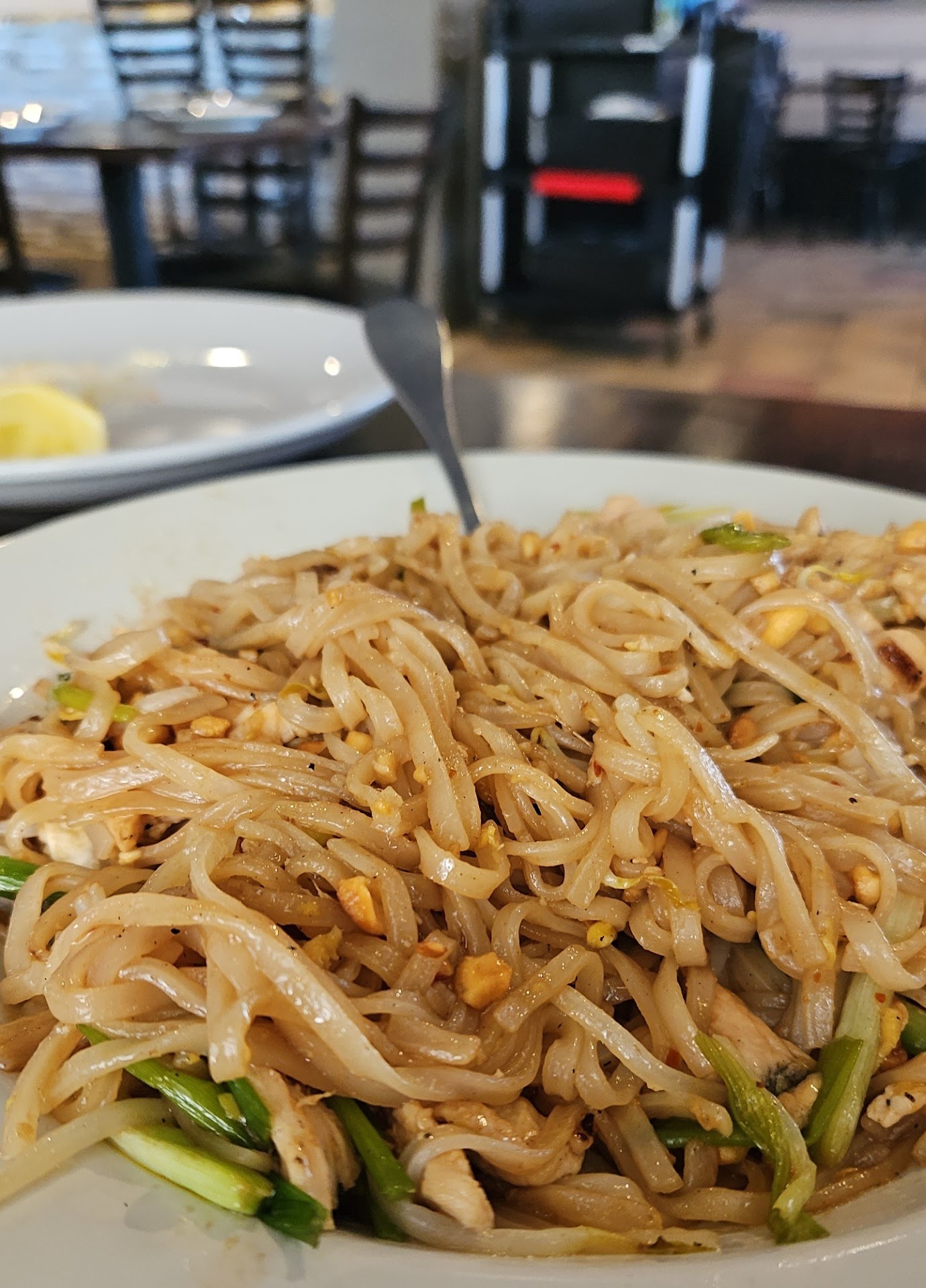 Read moreI enjoyed this precious little joint a lot. Before walking in the building you can smell the wok chi outside that came from the exhaust hood. I already have good feelings going on. The owners and server were speaking actual Thai language, great indicator of legit flavors! And it surely indeed was, this is the best Thai restaurant I've been to so far better than many "best Thai" from where I'm from, I can never look at other Thai restaurants the same anymore, I just got spoiled. I ordered red curry with shrimp and drunken noodles with shrimp and got 9! size 21-25 shrimps in my noodle, a Thai tea which had a huge portion anywhere I've been, a Thai slaw huge portion too, and mango with sticky rice dessert at the end, the total after tax came right under $60, this, is, underrated, under priced guys!!! We had left over to bring back. This is great value! In the era of automation and food processing, more and more restaurant foods aren't fully made to order and restaurants are trying to reduce labor intensity in order to cut costs and keep restaurant running with scarse labor resources. Hard working mom and pop restaurants, ethnic minority and locally owned small business like this need to be supported and cherished. Wok frying is very labor intensive and it's diminishing. I'm only visiting this town for 3 days and I'm gonna eat there again before I go. Service was very quick for one wait staff, it was simple and basic and not the type that get in your face, but adequate, if you like it where the server to all over you, this is not their style, but the server is alert and can tell you more about the food if you ask, that's good...