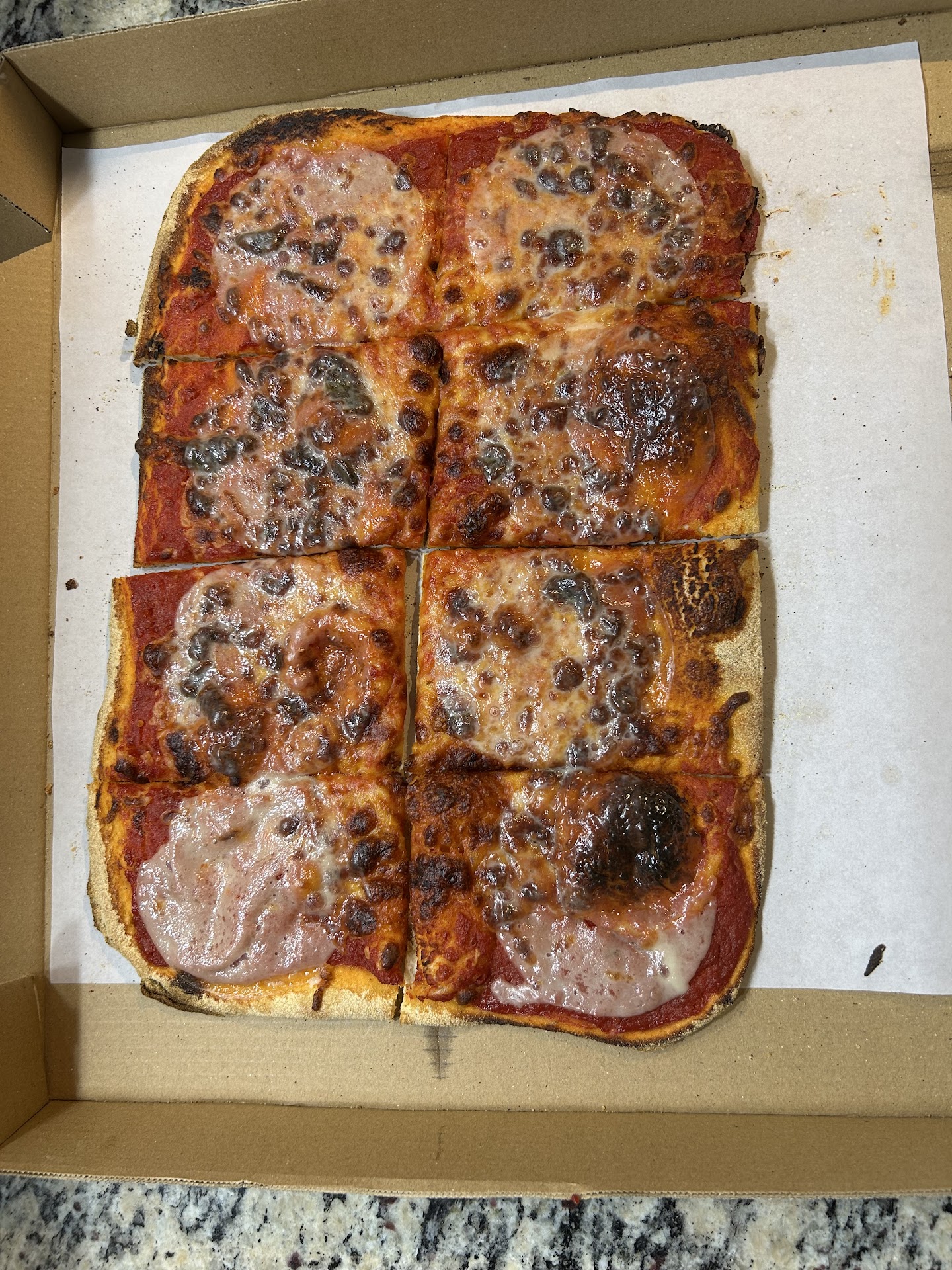 Alas Mickey I guess you think it’s over but it’s actually just beginning. It’s not my first review but this time I cannot say “ I recommend and will visit again” which is my favorite refrain to give a business. Last night it was the first time I used the Mickeys Pizza app called Slice, ordered my pizza, an appetizer for my area nurse husband, included a generous tip, and headed over to be on time to pick up my piping hot oven fresh order (see photos). Arriving precisely when the app said it’d be ready I happily strode to the register telling the fresh faced teenager my name sI observed another person placing hit from the fryer fries in a bag. Not a minute too soon in observed watching my fries tumble in and offering my name to the teens just asked question. She was was just pointing out that they were finishing it up when a woman in her late thirties intruded, infiltrating herself into the dialogue, and declaring that my order was not ready; Mickeys was “running late”, and my order needed “just a few more minutes”. I said no worries, though I was concerned by this sudden turn, chatted with the tween about her new” for the school year “ glasses, and observed as the five or so people behind the counter busied themselves with nothing much in particular, (there was no dinner rush and I was the only one in the restaurant waiting on an order). Finally, my pizza arrived, without, I thought, a hitch, . I left with the pie, drove off, grabbed a root beer from McDonald’s Donald’s and then opened to box ready to dig in to a yummy mickeys pizza. See the photo for what greeted my. I was beyond disappointed. The pure I had arrived on time for, but that was “delayed” was clearly burned. They left it in the oven a about five extra minutes and it burned during that “extra, needed time” It was also dried out, and tepid. The pie was cut at haphazard angles so as to form only an odd attempt at slices as of an attempt had been made only to offend. Everything with this pizza suggests intentional malice.