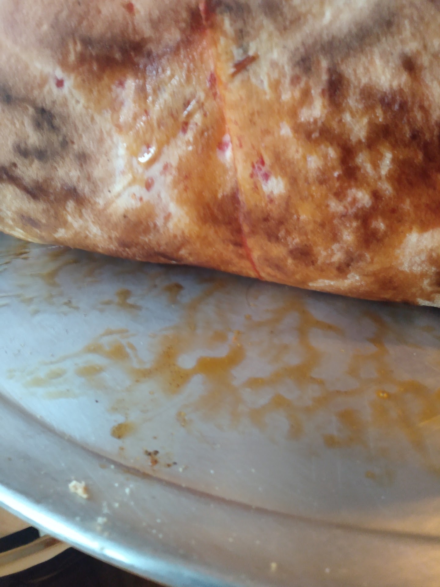The choices on the menu all sounded great, and it was hard to choose. We ended up doing half veggie and half "the butcher," which is basically a type of meat-lovers pizza. I partly wish we'd gone for plain cheese or pepperoni, just to better taste their basics... but I'm not complaining. I've worked in two different pizza places in the past and make my own from time to time. I've eaten at countless pizza places, from mega-chains to holes in the wall no one but the locals know about, in cities from coast to coast and even a couple in Ukraine and Russia. I know my pizza, and I know what I like. If this isn't the best I've had, it's definitely very high on the list. The crust is the foundation of any pizza, and so often overlooked. I've had all sorts and it's so often what turns me off of a pizza place, or, at least, fails to impress me. But Ricochet got it right. The edges and bottom were crispy without being hard or burned, while the insides of the crust had that perfect chew without being tough or doughy. And while there were "bones" on the ends (which I generally like if the crust is good like this was), they did an excellent job of getting the toppings so close to the edge that there was very little crust left. I wouldn't have minded more of a "bone" on my pizza with this crust, but the execution here was excellent. The veggies were all fresh and flavorful. if there was ANYTHING I'd change, the tomatoes on the veggie side might have been a little smaller, but that's just personal pickiness. Everything else on that side was great. The Butcher comes with pepperoni, sausage, bacon, and "ground steer." I'm a bit of a connoisseur when it comes to both pepperoni and Italian sausage on pizza. Both, here, were excellent. The pepperoni was the type that tends to bend into a cup shape when cooked. It's bite-sized and relatively thick-cut and just about perfect. The sausage was flavorful and evenly-spread. It wasn't too much meat causing a pool of grease to form on top of the pizza, but just the right amount: every bite was satisfying but not overdone. And it blended perfectly with the crust, sauce, and cheese.