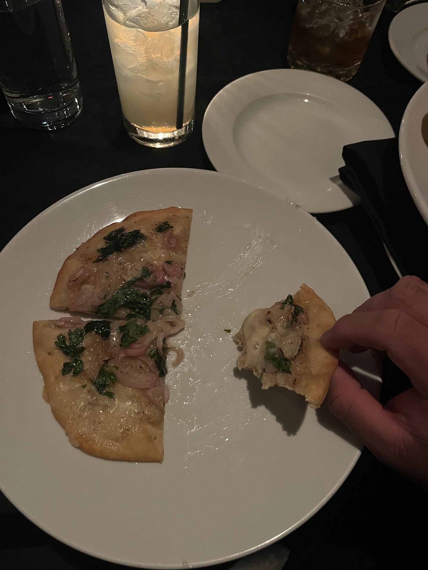 As I read the reviews of this place, I was skeptical. Surely an establishment that makes their noodles in house, and charges anywhere from 30-50 an entree would not consistently let people down. Well, I gave it a shot. We came here for my wife’s birthday. Started with the bone marrow pizza fritta. It was good. Hard to mess up really. The mussels with crostini were arguably good! Things were looking up. The creamy white wine sauce with faint crushed red peppers was tasty and gave much hope. And then my entree came out: Vongole- linguini noodles in a garlic, parsley lemon sauce with clams… Where to begin. The sauce has no real flavor. I couldn’t make out any of the listed ingredients but butter. It was seemingly not salted or seasoned even slightly. The noodles, soggy. Expecting al dente noodles at a place like this should not be far fetched? Maybe I’m missing something. And then the grit. The sandy, unpleasant, grit. Every bite I took led to crunchy sandy grit in my mouth. Unsure the source but most likely improperly (or not at all) cleaned and prepared clams. After the first couple bites I tried to get my waitress’ attention as she walked by, and was unsuccessful. After sitting there and letting the food get cold I realized help was not coming. Given that I was about to pay $36 for my gritty pasta, I ate it.. with a smile. As taught by my mother to eat what was served to you. (Although I think she meant places other than a ‘fine dining’ establishment lol) Duck confit w/ risotto: Flavor! Seasoning! An evident contrast! my wife enjoyed her food. Fresh lemon punching through the rich duck. Seasoned appropriately. Risotto, overcooked to the point of mush but she didn’t mind. Definitely over cooked but again - the wife was happy. We finished with burnt but ice cream. Good but not perfected. Very faint intended flavor and more vanilla than anything. They tried! We got Orange green tea cake with lavender whipped cream to go: it was on the dry side and hard. But the flavor was there. The lavender whipped cream was tasty.