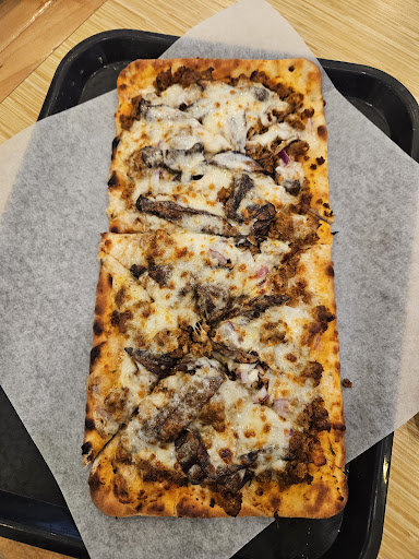 Pizza. 12" x 4" of great pizza. The crust was thin, flaky, but not overdone. I like a lot of sauce; and even though I would've liked a lot more, there was enough and didn't seem generic. I chose sausage and red onion, add mushrooms. Oh my goodness!! Expectations surpassed. The sausage had such an explosion of actual flavor...not generic ground. Red onion were perfectly done. The mushrooms? O yea! Cheeeeeeese u ask. Ha! It was a fantastical and beautimiss pizza