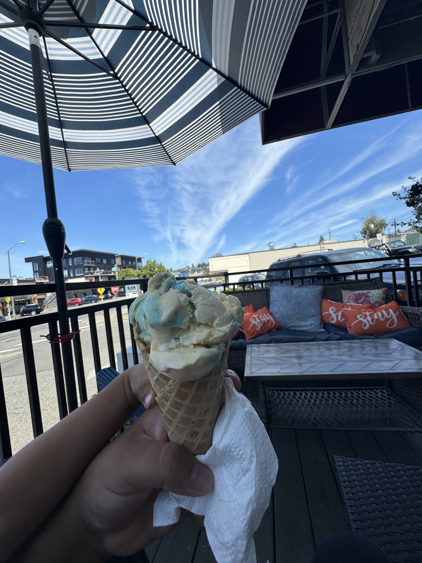 Read moreSusie, the owner, stopped to say hi on our way out. She and her hardworking team have made the most welcoming, efficient, and lovely spot with views of the water! I have worked in coffee for decades. My espresso shot had the richest crema on top! It was served in a mug, and I asked for 1 scoop vanilla ice cream and 1 scoop espresso almond fudge ice cream. A must try. You get to have a few bites of cold ice cream with espresso hard shell covering it, and then it melts in to become a cold, frothy coffee perfection! To have ice cream and coffee in one spot is so fun! The prices are also so reasonable. Under 3 dollars for 2 espresso shots made on a traditional machine. Not push button coffee like Stirbucks or drunken nodouhnuts here! A good sign is the line around the block for drive thru that moved fast! The menu variety of savory freshly prepared, meat, veggie, vegan, and gluten-free items was awesome to see, as well as fresh local pastries and many flavors of ice cream. It's hard to find all this in one well run spot that our whole family can order something from. Support them when you are in the Des Moines area. The only thing that made us sad is that we did not know about this place sooner!! It is one you will plan your next visit to before you are even gone. Like us, we want to make a special 1 hour trip to bring our mom here! They have ample window wrapped bar seating for working or reading and big round tables for large gatherings, plus the outdoor seating is so adorable! Kid games and even a reading reward card (see attached photos) Thank you, Susie, for keeping your faith at the forefront and rewarding this community with such a wonderful place to gather!! To your continued success 🙌...