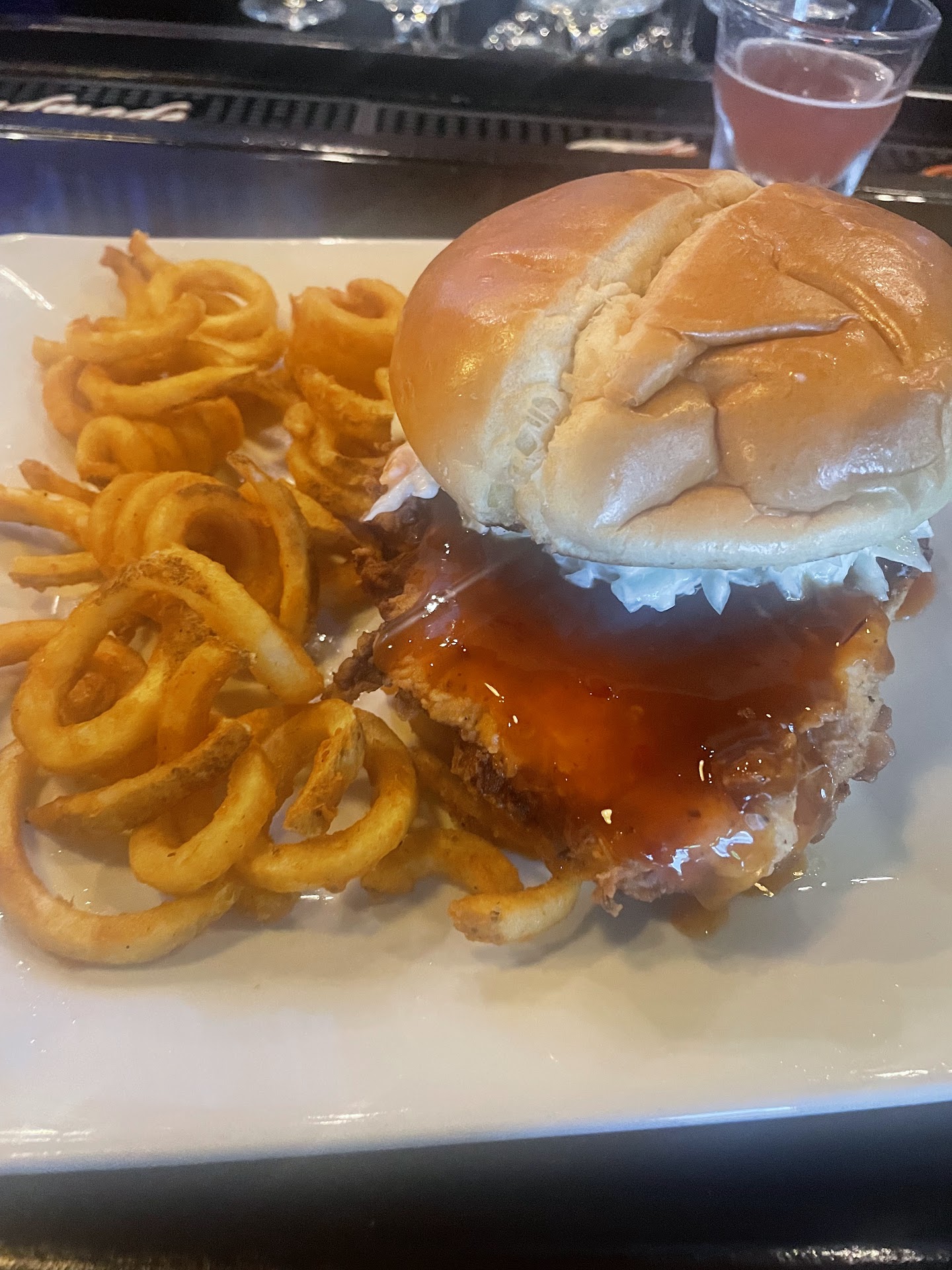 Read moreHonestly I’m so surprised. I came here for a drink once and it has fancy dive/pub vibes. Came back hungry and it did NOT disappoint. Got the hot honey chicken sandwich after sharing how torn I was with a few items and getting a recommendation from staff WOW. The hot is definitely there lol get napkins and a drink ready but so worth it. I love good that is spicy but flavor is really what matters and it was there! I’ll definitely be back to eat here more.
