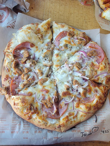 Their ingredients are always super fresh and top quality, & they have options most places don't. You can get 6 cheese options ON TOP of the usual mozzarella/parmesan/feta! Start with their classic red sauce or their creamy white sauce. Then pick whatever cheeses you desire, followed by any of their many meats and vegetables. They have pesto, grilled chicken, bacon, Italian sausage, Italian meatball, pepperoni.. to name a FEW. Vegetables - cherry tomatoes, red onions, jalapeños, banana peppers, green peppers, roasted red peppers... to name a FEW!