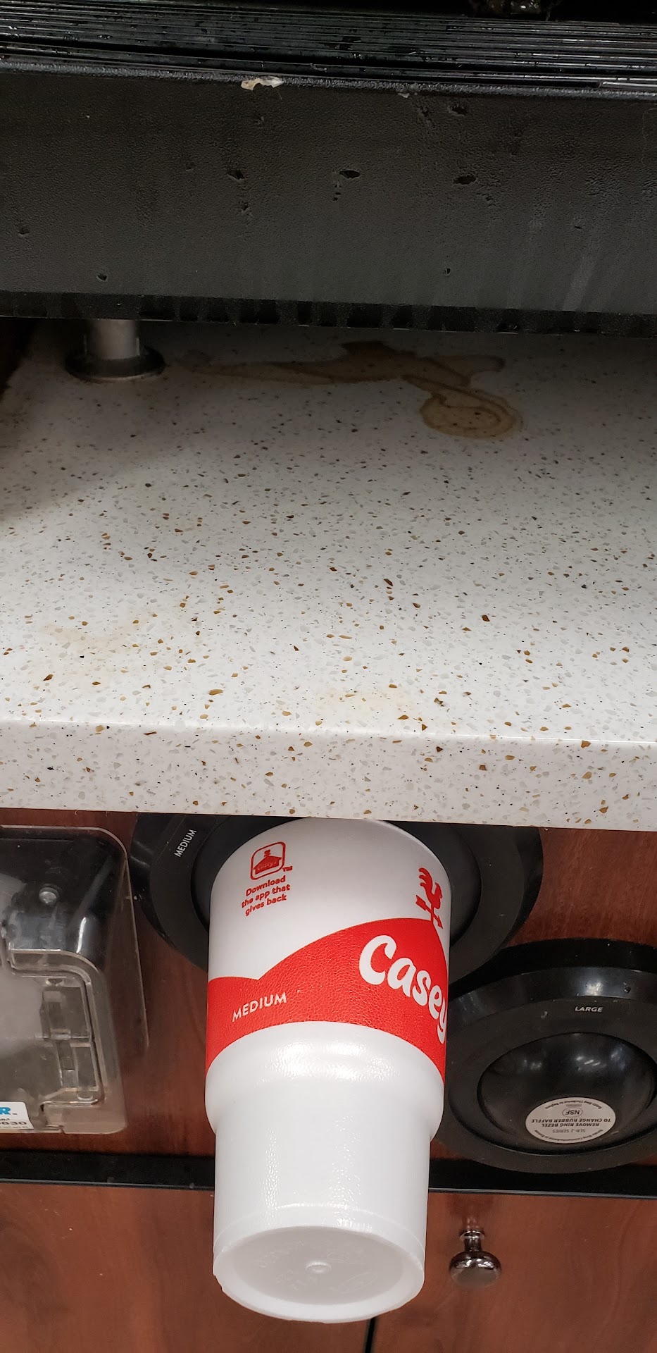 Read moreI use Casey's alot! This store was the dirtiest one I've been to so far. The female restroom was not cleaned thoroughly for awhile it looked like. Toilet was nasty inside & out! The paper towels were empty the sink counter was dirty. The baby changing table had 4 - 5 small bugs crawling around on it. Kinda redish in color, so maybe small fleas? Not sure at all though. The floor hasn't been cleaned good either. There were dead (i think)bugs on the floor around the floor boards & in corners. Then I went to get a pizza slice & they only had 2 pizzas in the warmer, but the warmer wasn't on. I think it was around 5:30 or 6:00 pm so idk what was going on there? They also didn't have any of their sandwiches or appetizers. I was disapointed...until I saw the pizza warmer & the counters & the donut case!! They were all dirty and disgusting!! Idk when they were cleaned last? I don't think I will visit this store again, unless its to check & see if they have improved in the cleaning department. The young employee at the cash register was very friendly and pleasant though. I realize this is a busy location, so they may not have had a chance to clean it or somebody may have called in sick or some other explainable issue, so I will check back again...