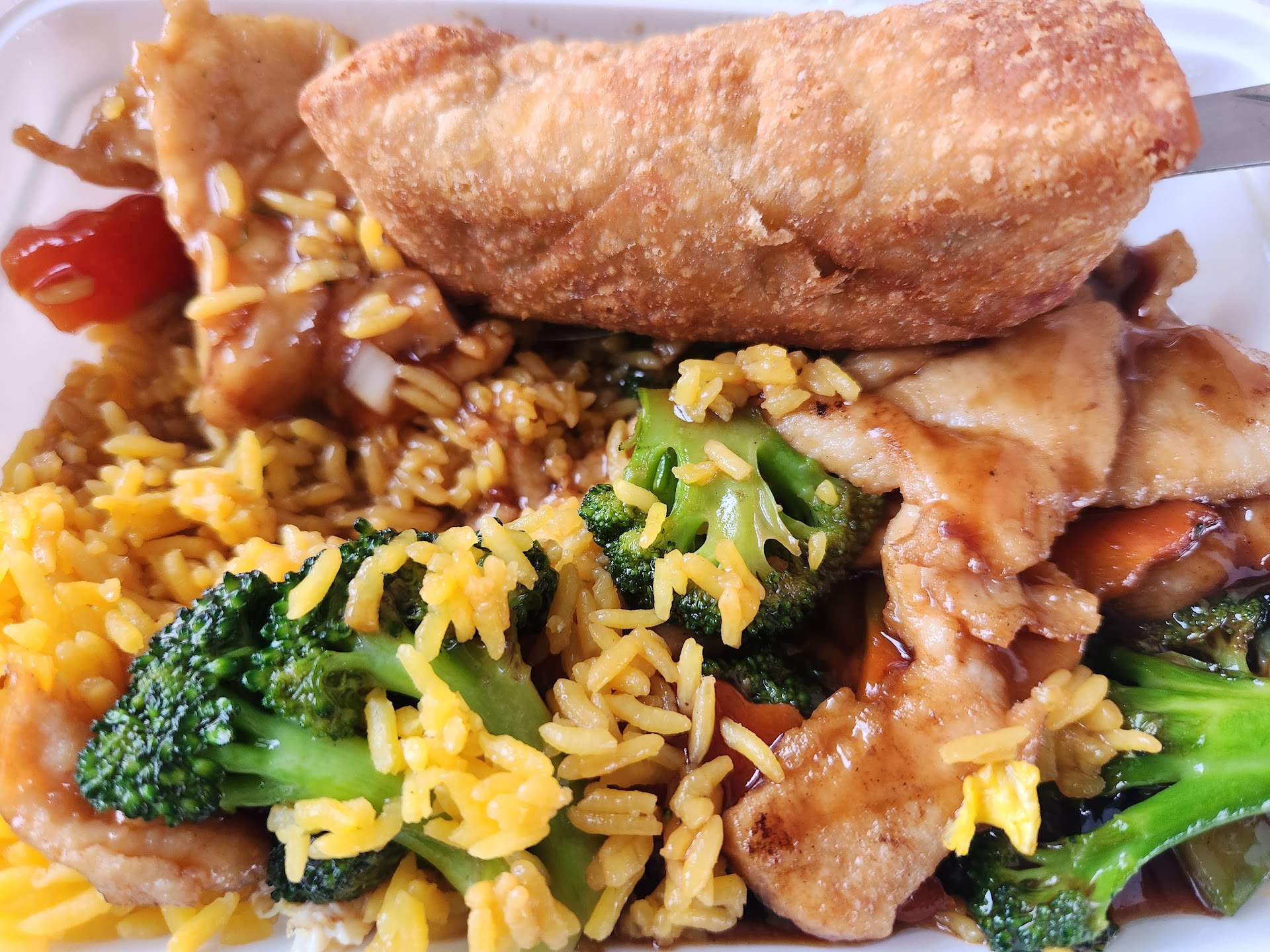Read moreVery rude when I got there (9pm on a Monday, close at 10pm). Lady at counter looked at me while I was looking at the menu and ran in back to talk to the cook (presumably about me, as I have Rosatia and my nose is unusually large). After chatting and giggling with the lady, the cook came out to take my order. Ordered General Tso's chicken dinner and a couple spring rolls on menu, then used the restroom (which smelled like sewer line was backing up). When I came out of that stink closet, I noticed my order on the special sign by one of the drink coolers. I asked about it, and the lady that practically ran in back when I got there just kept repeating "You get more" from the kitchen. Told me to sit down to wait, as she obviously didn't like me watching my $11 order get made. Get home to eat one of the most disappointing meals in recent memory. No offer of anything other than white rice, was nuked by cook to reheat (watched him do this, mind you), and dry. Chicken was dry as well (as in overcooked, not fresh, premade and boxed, was not done there), too much sauce and had way too much broccoli. I will never go here again, and will tell everyone I know about my...