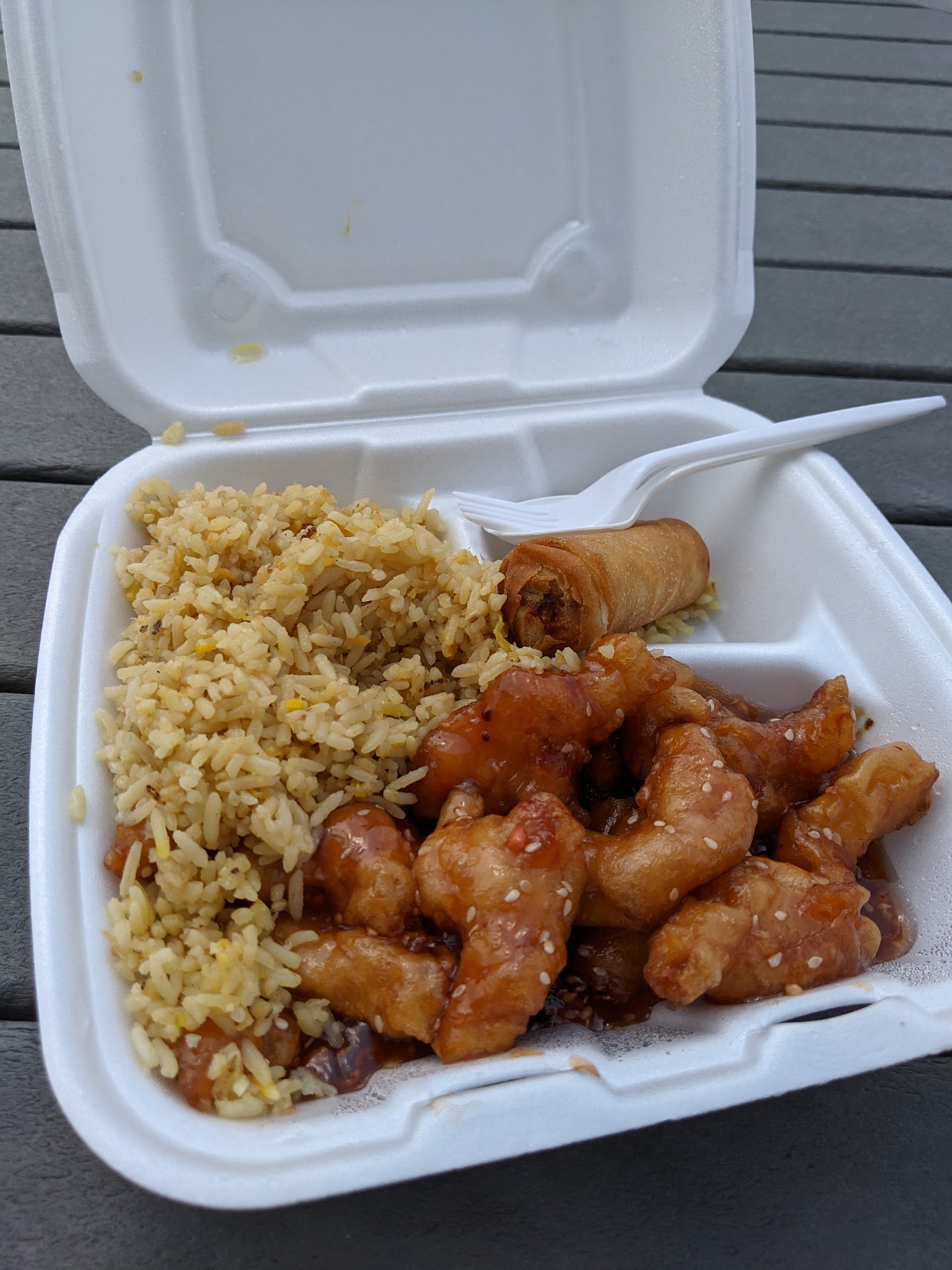 I ordered 3 different dinners that all tasted the same! They were so heavily battered that I attempted to cut off the batter to get to the limited chx & fish inside. Thankfully, the beef was not battered, but it still had the very same seasonings. I realize it was late, but they were out of both soups also. They offered more egg rolls, but refused my request for crab Rangoon instead. Just as well, both were very dry & obviously had been sitting there awhile.
